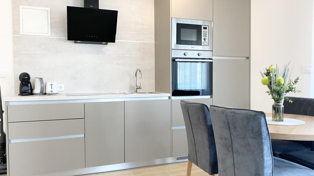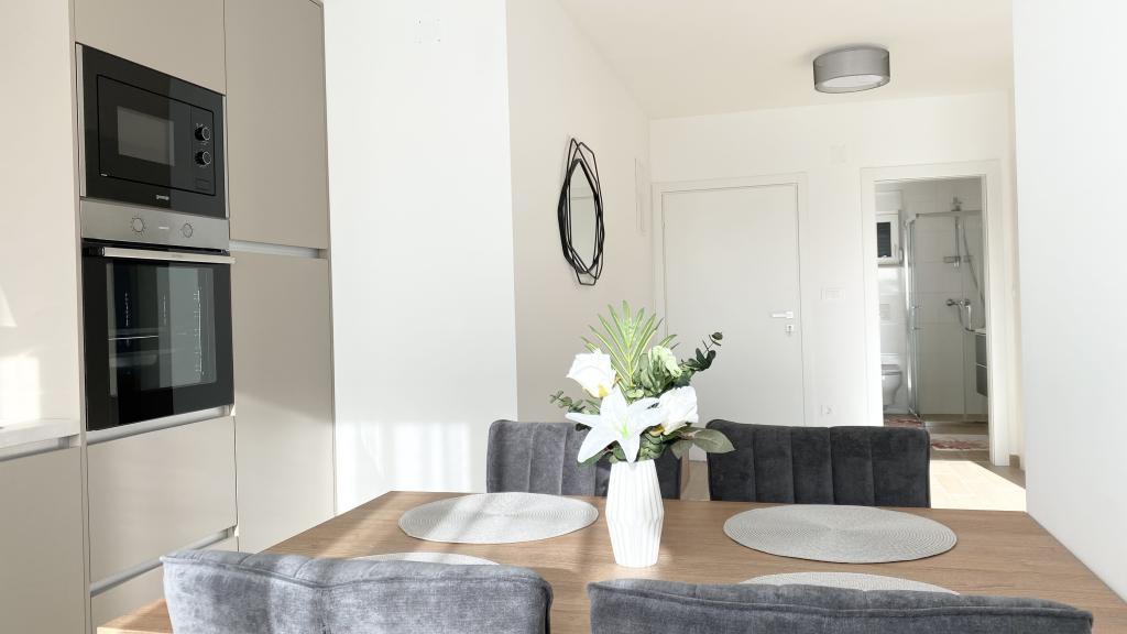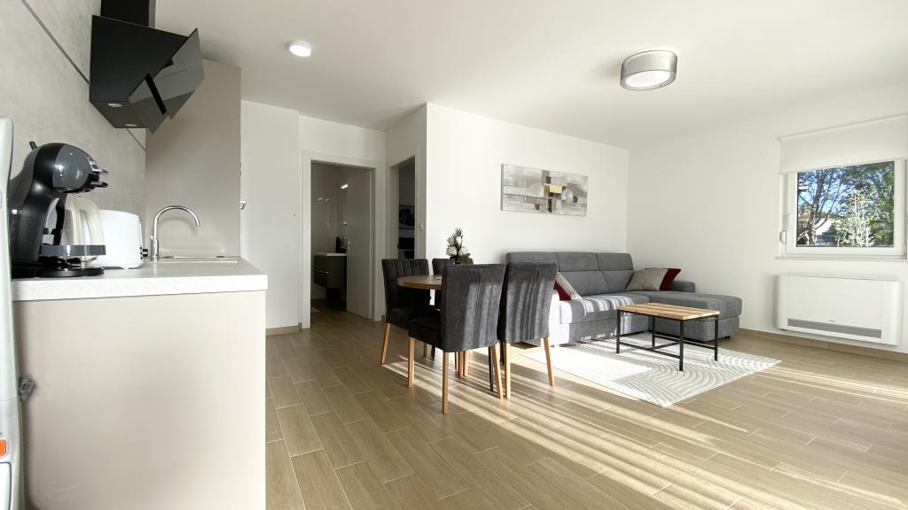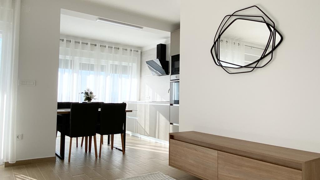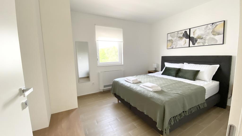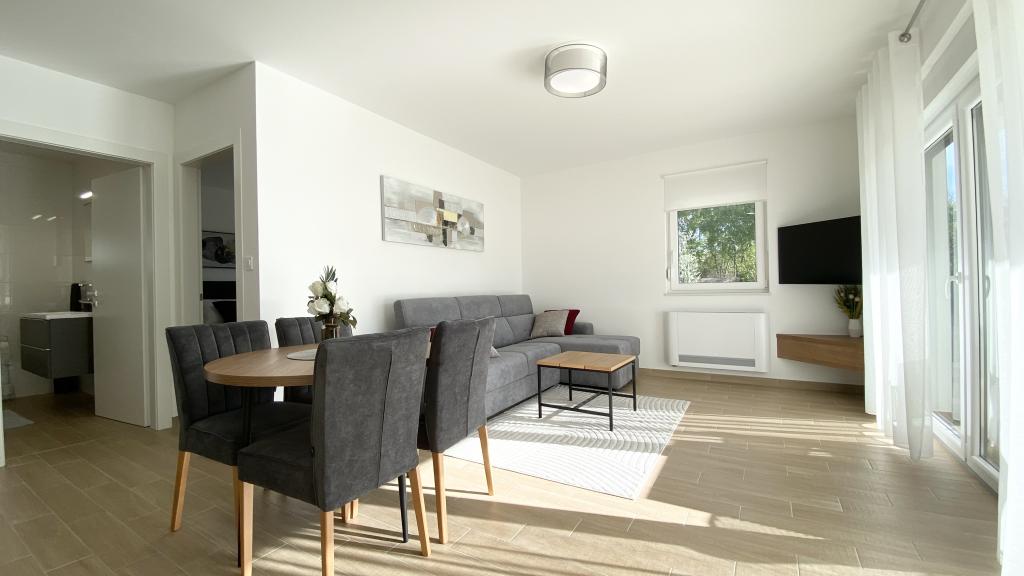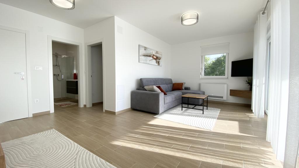 Villa Malina is een nieuw appartementencomplex gelegen in een rustig deel van het dorp. Het beschikt over drie modern ingerichte appartementen van 50, 55 en 60 m² met aparte ingangen en beveiligde parkeerplaatsen op het erf. Elk appartement heeft een woonkamer, slaapkamer, badkamer, keuken en een overdekt terras. In de woonkamer staat een slaapbank die als extra bed voor twee personen kan dienen. De keuken is uitgerust met serviesgoed, keukendoeken, oven, magnetron, koelkast met vriezer, waterkoker, elektrische kookplaat, broodrooster en vaatwasser. Verder zijn er internet, airconditioning in elke kamer, een stofzuiger, een wasmachine, een föhn en horren voor alle ramen. Een babybedje is op aanvraag beschikbaar. Gasten hebben toegang tot een gedeeld terras met barbecue en een buitendouche. Bij een verblijf van 10 dagen of langer is er 10% korting beschikbaar.