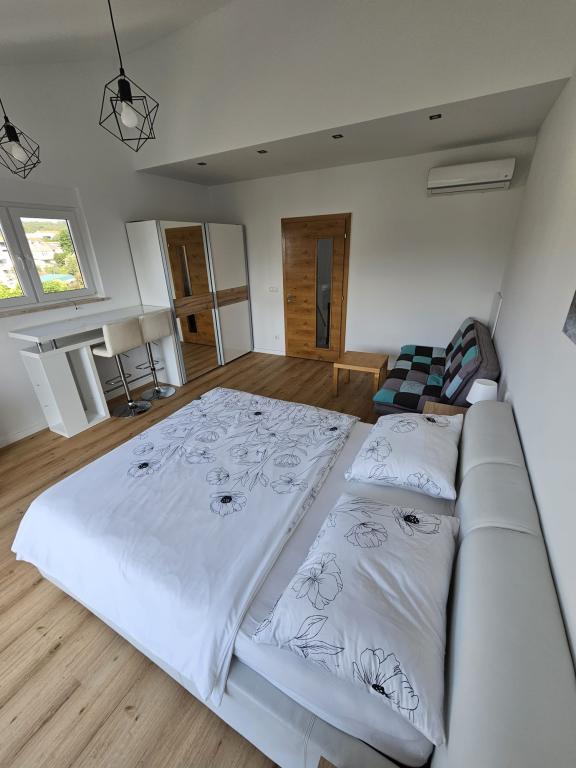 Een modern en goed uitgerust huis met alle apparatuur die nodig is voor een aangename vakantie, en hier benadrukken we het zeer comfortabele slaapbed. Dichtbij alle voorzieningen: restaurant, centrum, zee, strand, winkel, fitnessstudio, discotheek, busstation,. Ziekenboeg...-.!!! - Alles binnen 10 minuten lopen, wat betekent dat u uw auto parkeert en deze niet hoeft te verplaatsen, tenzij u het groene eiland wilt verkennen. Berging voor fietsen, ligstoelen etc. Op het erf is een barbecue en een gedeeltelijk met kunstgras bedekte plek waar ligstoelen staan.