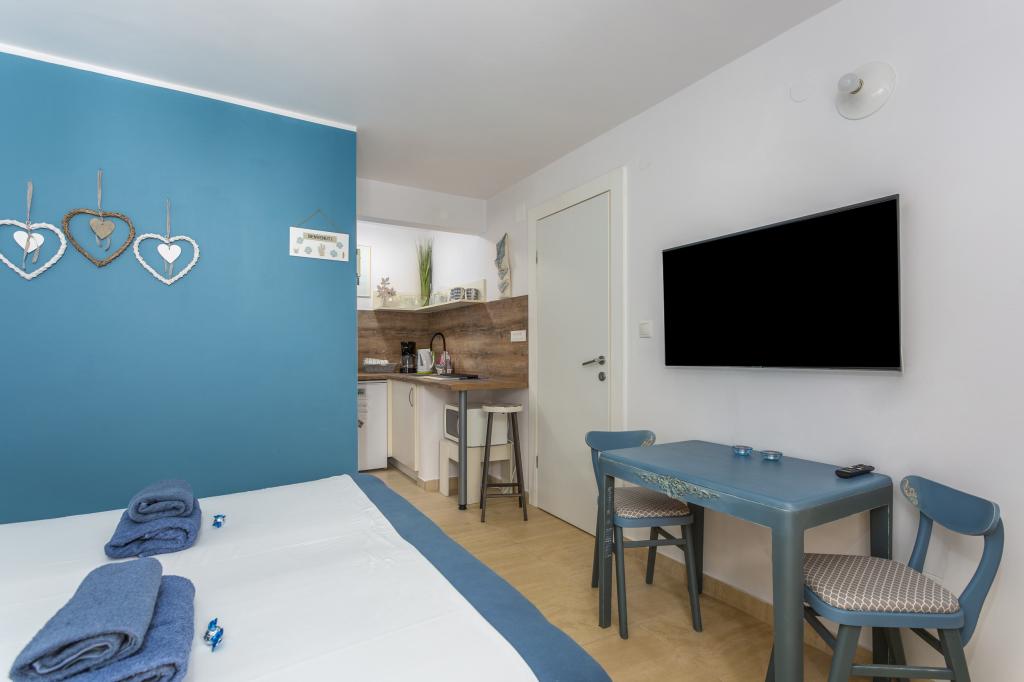 Nieuw en modern uitgeruste appartementen en kamers in Malinska. We zijn gevestigd in een rustige straat, op 3 minuten lopen van het strand en op 500 meter van het centrum. Parkeren kan in de tuin. Elke wooneenheid is uitgerust met airconditioning, wifi, smart tv met de mogelijkheid om Netflix te gebruiken. De keuken is van alle gemakken voorzien. Koelkast met vriezer, oven, waterkoker, koffiezetapparaat, magnetron. Alle voorzieningen (winkels, restaurants, stranden, apotheek, station) zijn op slechts enkele minuten loopafstand van het appartement aanwezig. Onze gasten zijn erg belangrijk voor ons en we staan tot hun beschikking met advies, aanbevelingen en acties.
