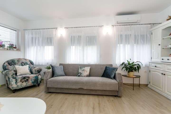 De appartementen bevinden zich in een korte straat, die 50 meter vanaf het begin scheidt van de hoofdstraat die naar het Malim hotel leidt. Het huis heeft één verdieping waar mijn man en ik wonen, en op de begane grond bevinden zich 2 appartementen met elk een eigen aparte ingang met ruime terrassen. De appartementen hebben 1 tweepersoonskamer en een bank in de woonkamer, die indien nodig kan worden uitgeschoven als extra bed, wat naast al het andere zichtbaar is op de foto's. De appartementen beschikken over een strijkijzer met strijkplank en een föhn. De straat onder ons heet Obala en het is een kust met stranden die zich uitstrekken van onder het hotel tot aan het centrum van de stad.