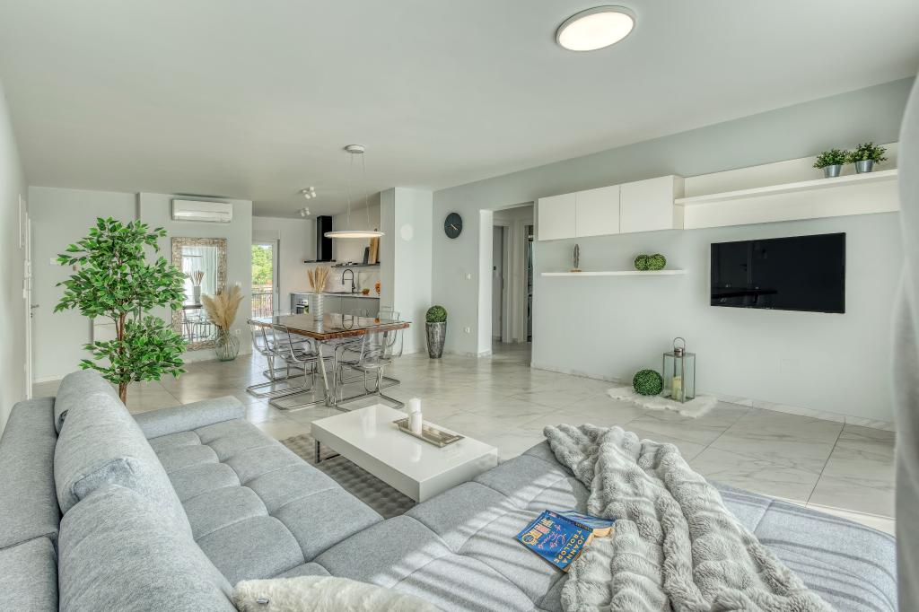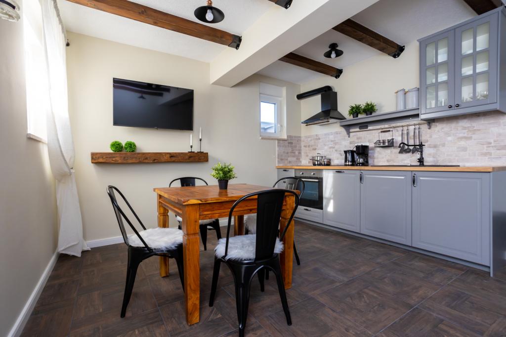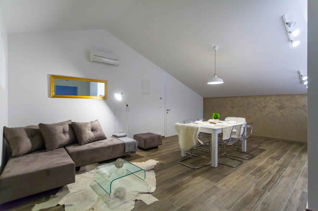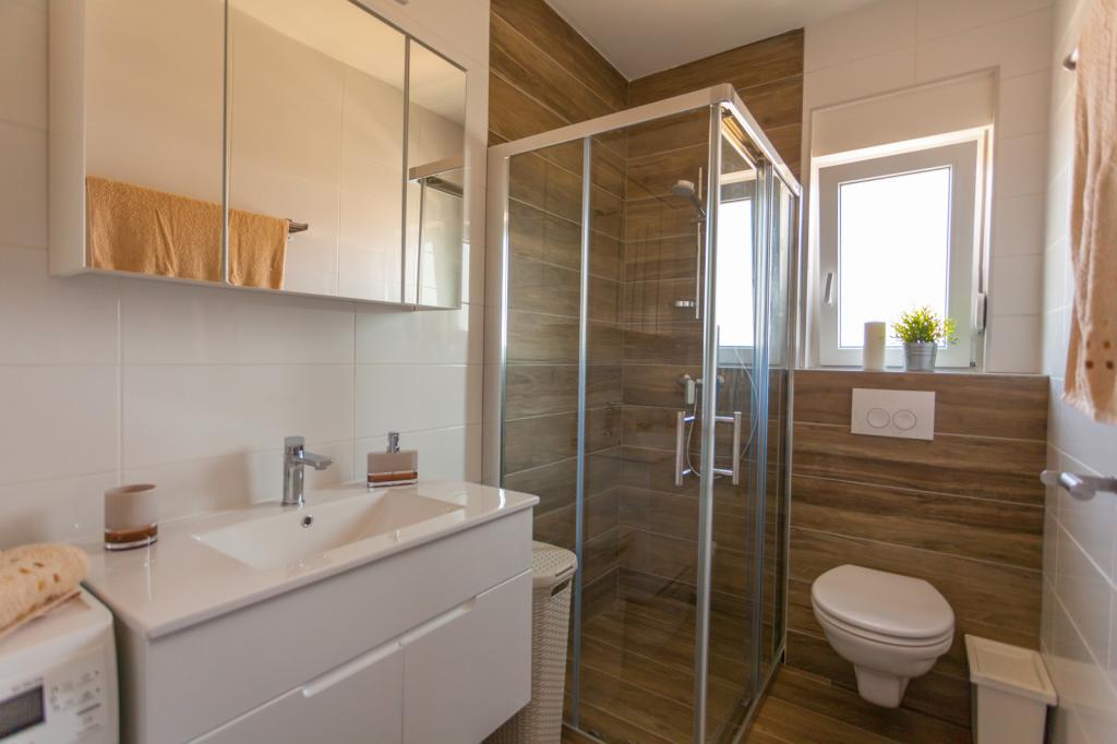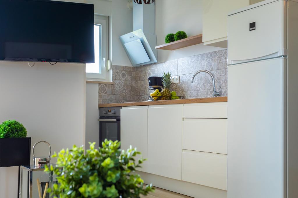 Villa FE biedt moderne en elegant ingerichte appartementen met een prachtig uitzicht op zee, gelegen in een rustig en aantrekkelijk deel van Malinska - Rova, op slechts 300 meter van het strand. De villa bestaat uit vijf modern ingerichte appartementen: één in het souterrain, twee op de begane grond en twee op de eerste verdieping. De appartementen op de bovenste verdiepingen hebben een eigen balkon, ideaal om te ontspannen met uitzicht op de Adriatische Zee. Het interieur is ingericht in een eigentijdse stijl met zorgvuldig geselecteerd meubilair dat zorgt voor een comfortabel en aangenaam verblijf. Gasten hebben toegang tot airconditioning in de gemeenschappelijke ruimtes en slaapkamers, een tv en snelle en gratis wifi in de hele accommodatie. Dankzij de uitstekende locatie nabij stranden, restaurants en lokale voorzieningen is Villa FE de perfecte keuze voor een romantische vakantie, een gezinsvakantie of een ontspannende vakantie aan zee.