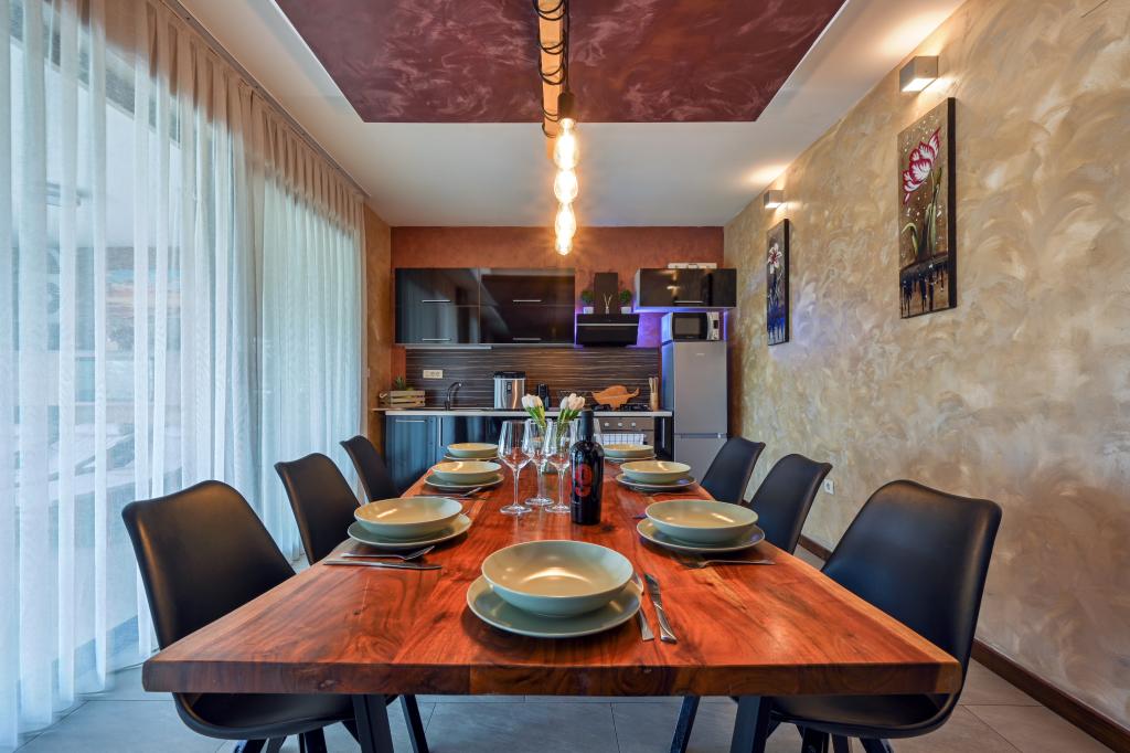 In het hart van Marija Bistrica, op de open plekken van de Zagorje-heuvels, met een uniek uitzicht op het beroemde Mariaheiligdom en een verschijning die niemand onverschillig laat, ligt het vakantiehuis Divinus. Het huis heeft twee slaapkamers met tweepersoonsbedden, één kamer heeft een extra bed en er is de mogelijkheid om nog drie personen te laten slapen op de hoekbank in de woonkamer. De woning beschikt over twee badkamers, een ruime woonkamer met keuken en eethoek. Het hele jaar door zijn er een verwarmd binnenzwembad, een sauna, een buitenjacuzzi met hydromassage, een overdekte prieel met barbecue en een kinderspeelplaats beschikbaar. Door de unieke, rustige ligging is het geschikt voor een familievakantie of een romantisch uitje voor twee.