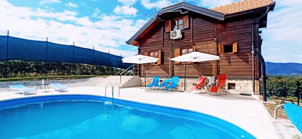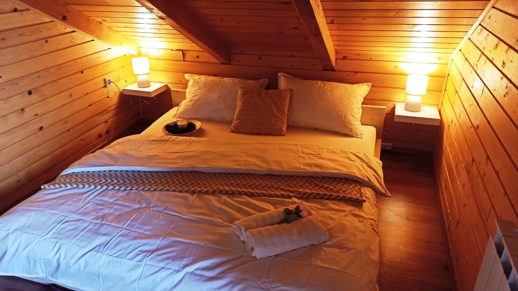 Holiday Home King's Lodge is een houten eikenhouten huis gelegen in Hrvatsko Zagorje met uitzicht op de berg Ivanščica ... Tot uw beschikking: - 3 aparte slaapkamers - 2,5 badkamers - ruime woonkamer met open haard - sauna - barbecue met overdekt terras - ruimte voor gezelligheid en spelen (darts, biljart, ps, gezelschapsspelen...) - buitenhaard - kinderspeeltuin - kinderhoek en leeshoek