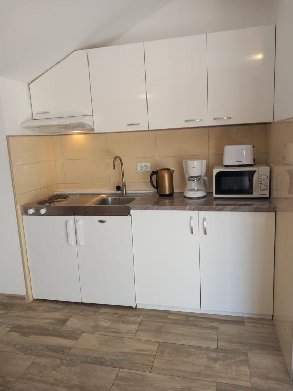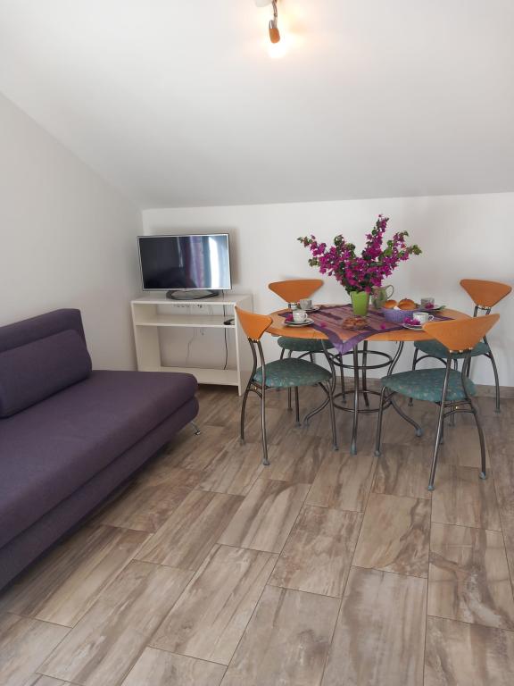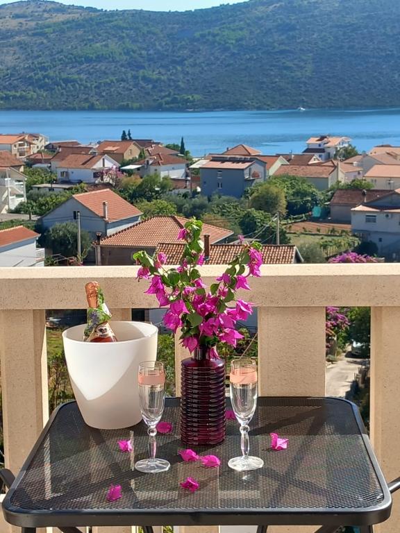 Volledig ingerichte en moderne appartementen in een rustig deel van Poljica met een prachtig uitzicht over de zee en de baai van de jachthaven. Tot uw beschikking een groot appartement voor 2-8 personen met Velka balkon met direct uitzicht op de zee vanaf de zuidkant en een groot terras aan de noordzijde, waar ook een uitzicht op zee en is uitgerust met tuinmeubelen, ligstoelen en parasols, ideaal voor de lunch en 's middags vakantie. Het terras is direct verbonden met de parkeerplaats die is gratis en een kleine basketbalveld. Het appartement heeft drie slaapkamers met een double-double bedden, waarvan één kamer heeft een extra badkamer. Grote ruime hal, badkamer, keuken en woonkamer. In de tuin is er een open haard -gril die je kunt gebruiken op elk moment. Klein appartement voor 2 personen heeft een extra ingang en een eigen terras, omgeven door bloemen en groen, met een adembenemend uitzicht op de zee ... Beide appartementen zijn gelegen in een rustige plaats, zodat u kunt genieten van de rust en stilte ...