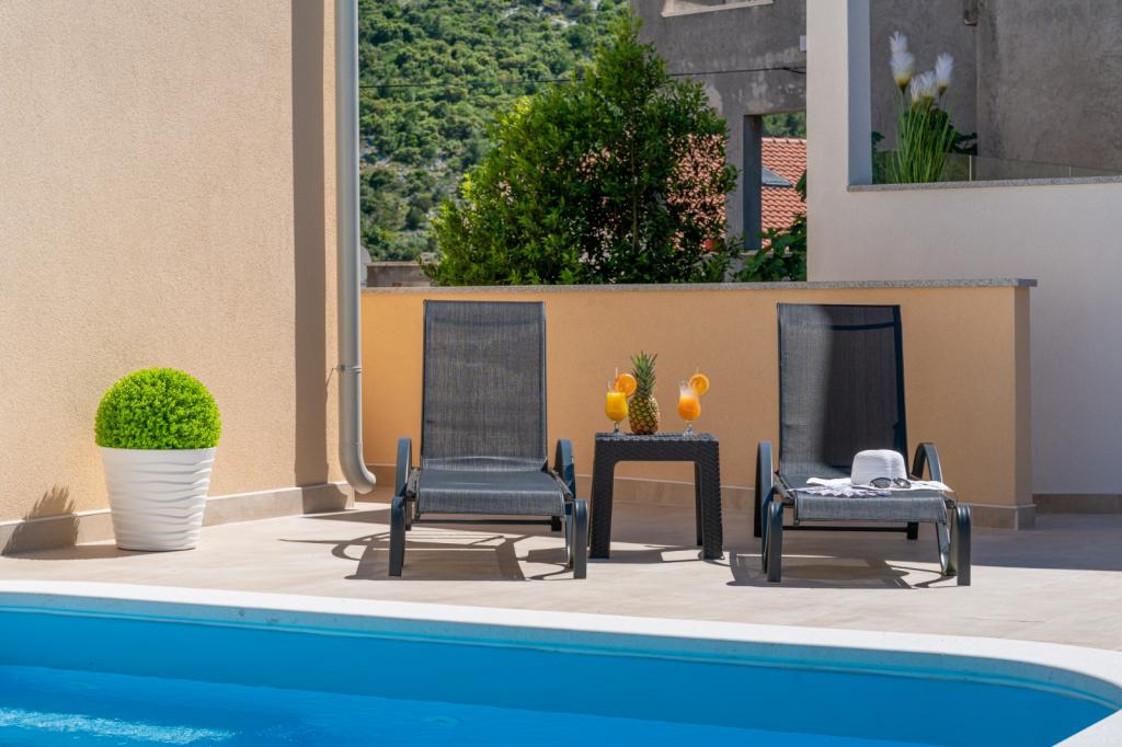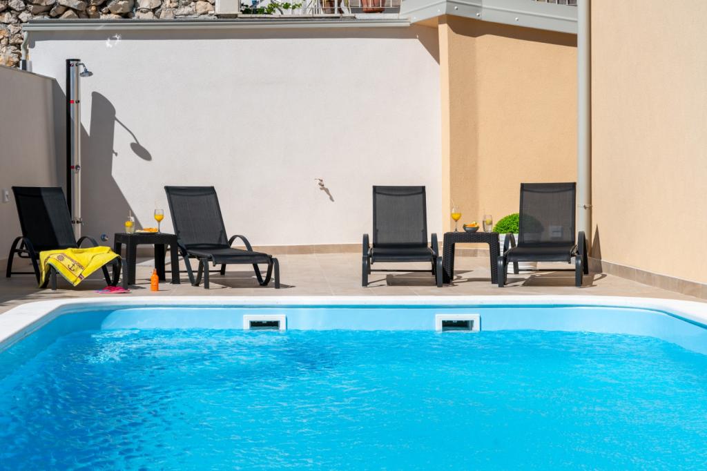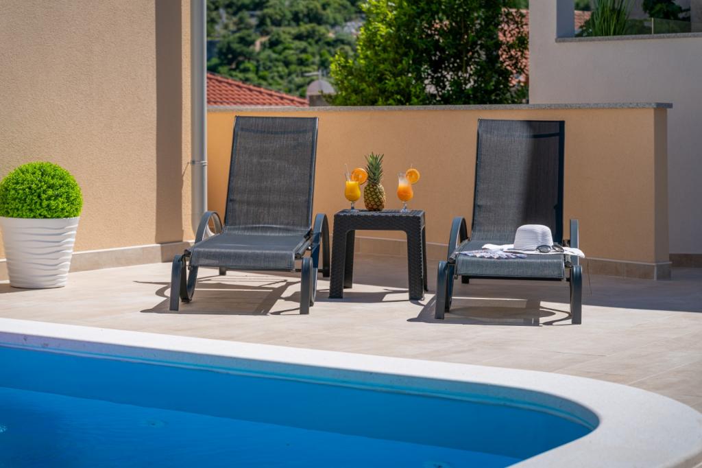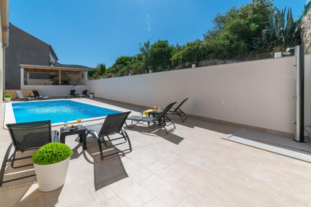 Waarschijnlijk een van de beste accommodaties in CRO. Alles is zeer goed onderhouden, volledig uitgerust, modern en voorzien van airconditioning. Er is een terras met een volledig uitgeruste barbecue bij het zwembad. Er zijn ligstoelen bij het zwembad, een douche en een toilet. Het uitzicht vanuit de villa is fantastisch. De eigenaresse, Marina, is een geweldige en warme dame. Ze was erg behulpzaam en verwelkomde ons zelfs met lokale vleeswaren, kaas en brood. Het strand (kiezelstrand) ligt op slechts twee minuten afstand. Ik kan het van harte aanbevelen! We komen graag terug.