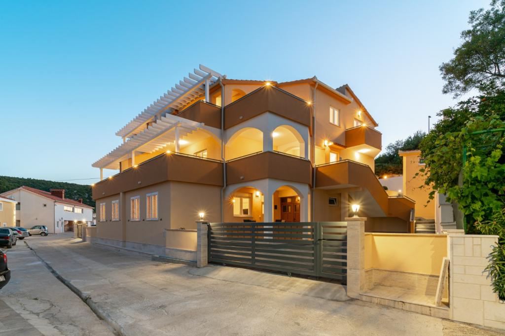 Villa A is een prachtige villa gelegen in een rustige plaats Marina in de buurt van Trogir.Het bestaat uit 6 appartementen, zwembad, buitengrill, privé parkeerplaats. Afstand van het strand is 70m en naar het centrum 500m.