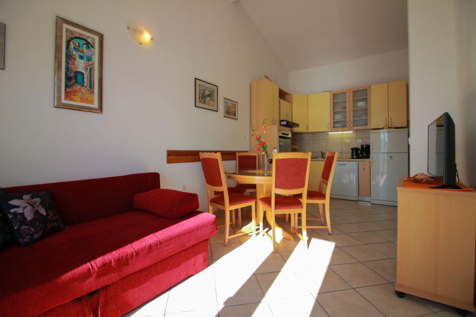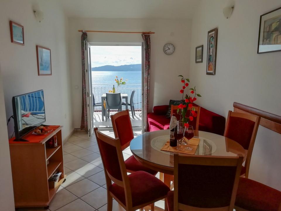 Een fantastisch vakantieappartement met veel voordelen: Het appartement is ruim, modern en esthetisch zeer sfeervol ingericht, uiteraard ook met W-LAN en airconditioning. Vanaf het balkon heb je een fantastisch uitzicht over de zee en de bergen - een combinatie die alleen Kroatië kan bieden! Het appartement is gelegen in het kleine dorpje Marusici in de buurt van de "piratenstad" Omis, op een zeer rustige locatie en tegelijkertijd gemakkelijk bereikbaar vanaf de kustweg. Het idyllische strand, dat vooral door de lokale bevolking wordt bezocht, ligt op slechts een paar minuten afstand. U kunt langs de kust peddelen met de kajak van de huurder. Jadranka en Doni zijn uiterst vriendelijke en hoffelijke verhuurders met raad en daad!