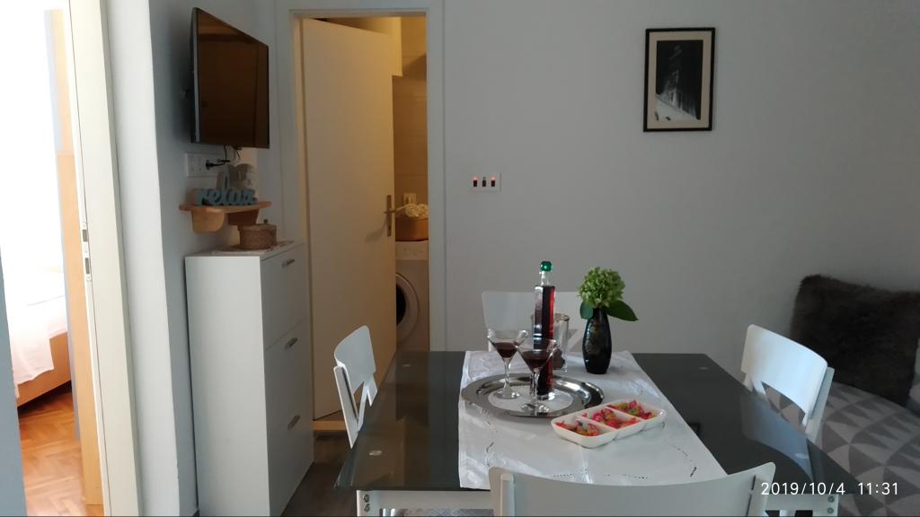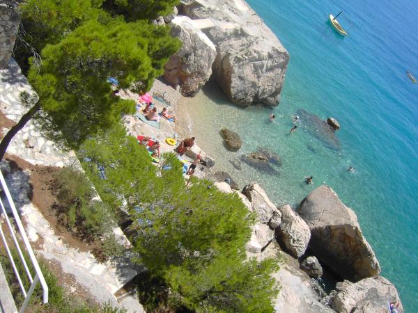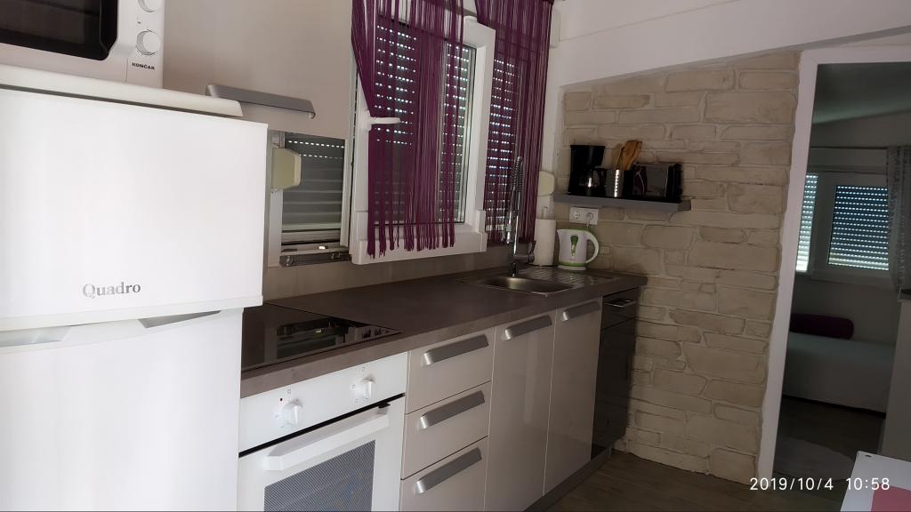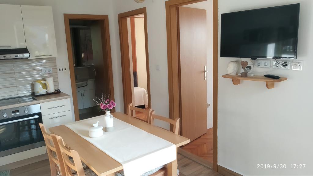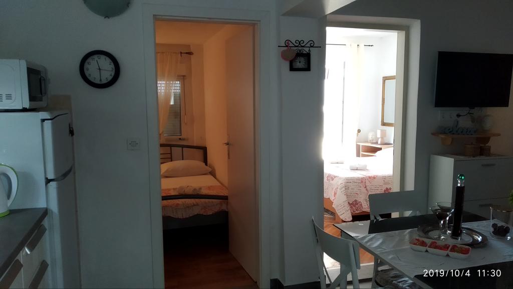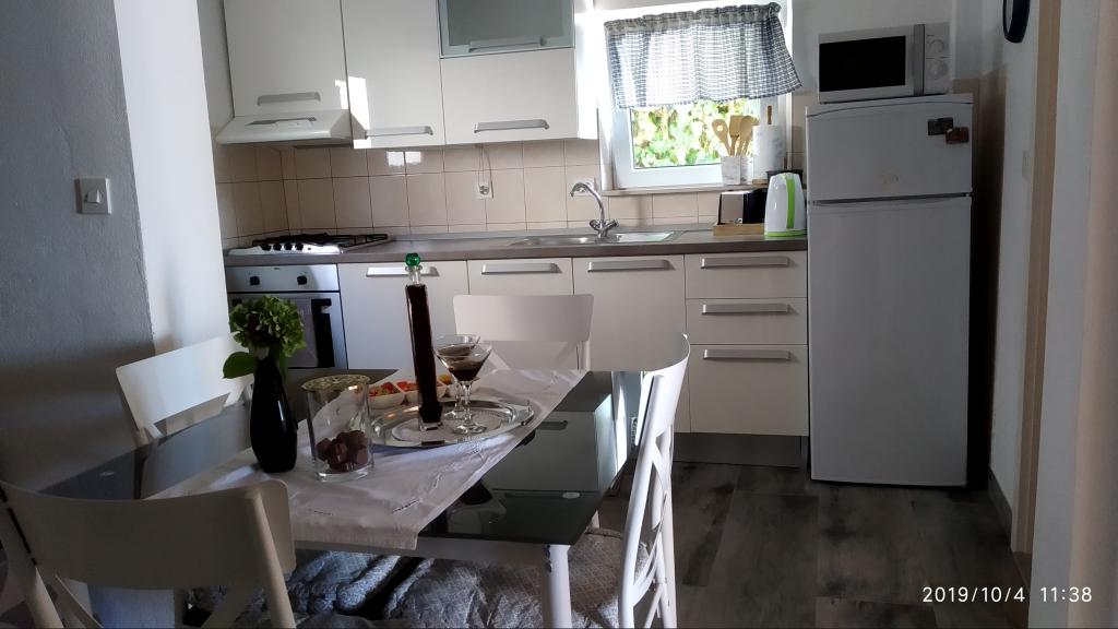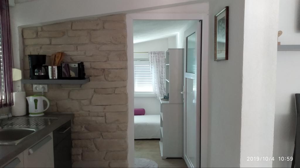 Appartement was geweldig. Wij waren er van 14.8 tot 21.8.2018. Er was niets mis mee. De gastheren hadden overal een open oor voor. De zee was het mooiste wat ik ooit ben geweest. En ik ben veel in Kroatië geweest. Het water was zo helder en schoon. Gewoon een droom. De kinderen kunnen van verschillende hoogten van rotsen springen. Maar je moet wel beseffen dat je 150 trappen naar het strand hebt. De weg naar het appartement is dan ook vermoeiend. Het enige goede ding is dat de klim in de schaduw is. Voor gezinnen met kleine kinderen is de plaats niets. Op het strand had de eigenaar een kamer waar je zijn spullen kon deponeren. Dat was erg handig. Er was geen café of toilet op het strand. De appartementen bevinden zich in een zeer steile en smalle straat. Geen probleem voor goede chauffeurs en sterke auto's. De parkeerplaatsen in de voorkant van het huis zijn zeer goed. Er is een winkel in de hoofdstraat hierboven. We hadden beide appartementen boven. Beiden hadden grote balkons. Wat ik persoonlijk betreurde dat je de scheiding op het balkon niet kon verwijderen. Anders hadden we een gemeenschappelijk enorm balkon gehad. We zouden nog steeds samen kunnen eten. Buiten zijn er ook zitplaatsen. Een appartement op de bovenverdieping heeft een wasmachine. Op sommige ramen zijn muskietennetten. Helaas had onze slaapkamer geen black-outmogelijkheden. Het uitzicht op de appartementen was fantastisch.