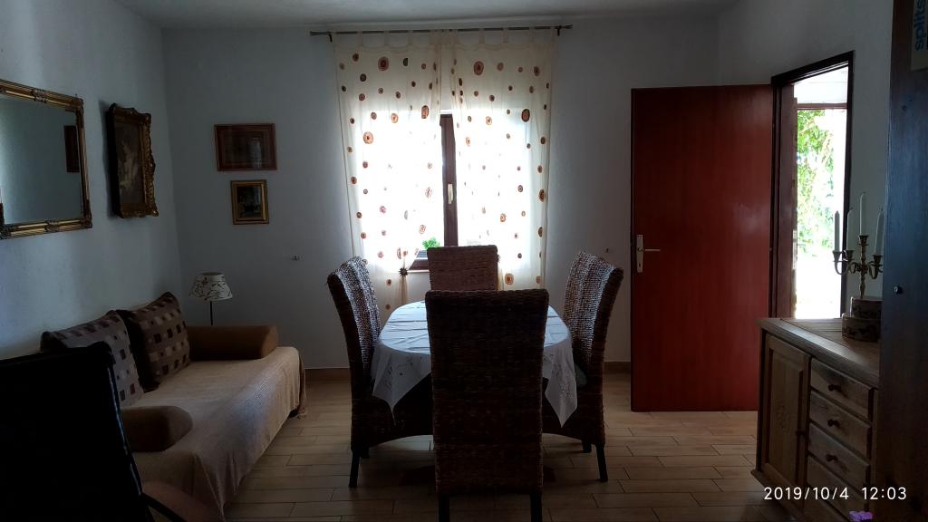 In het dorp Marusici - Omis Riviera - via welke passeert de hoofdweg SPLIT - Omis - SPLIT - DUBROVNIK dicht bij de zee is gelegen in een vakantiehuis. Onder het huis is het strand. Het huis heeft 5 appartementen: - 2 appartementen (4 + 1) ca. 45m2, - 1 appartement voor 5 + 1 personen, - 1 appartement voor 6 personen, - 1 appartement (gelijkvloers) voor 8 personen. Van 01.06.-20.06. vakantie voor een gezin van vier 30 Eur / nacht.