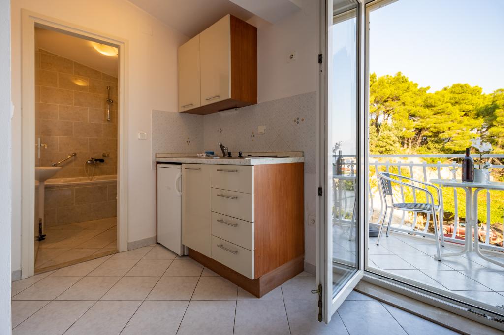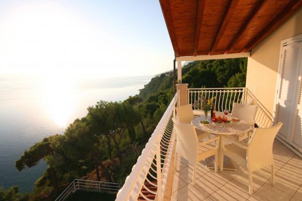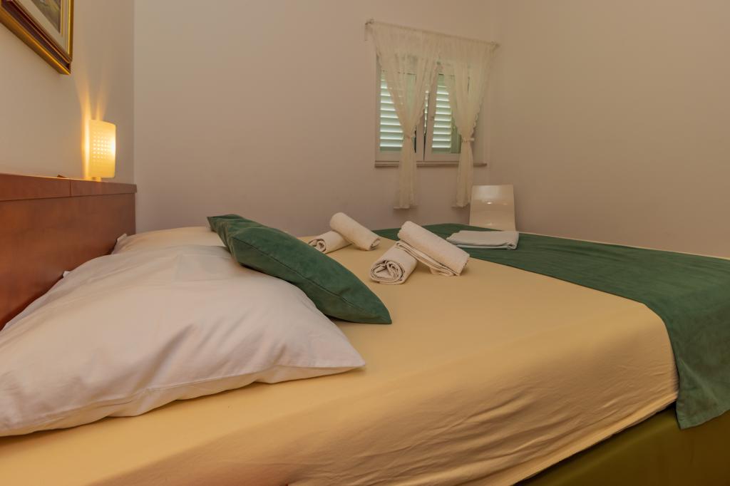 Villa Mandolina ligt direct aan het strand, aan de rand van een rustige baai. Alle appartementen beschikken over een terras met een prachtig uitzicht op zee en de nabijgelegen eilanden. Elk appartement beschikt over een modern uitgeruste keuken, badkamer, gratis wifi, satelliet-tv, airconditioning, douche, handdoeken en linnengoed, woonkamer met slaapbank en eetkamer. De villa heeft drie of vier typen appartementen en de prijzen variëren afhankelijk van de grootte en locatie. Als gast kunt u gratis gebruikmaken van het prachtige strand (grill op het strand en bij de villa, twee gratis ligstoelen per appartement tot het einde van uw verblijf in de villa, parasols, douche op het strand) en de parkeergelegenheid met videobewaking! Het strand is direct vanuit de villa te bereiken via een trap.