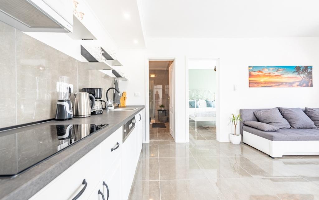 Moderne en volledig uitgeruste appartementen in een rustig deel van Maslenica. De voorziening bevindt zich in het centrum, op 250m loopafstand van de winkel en op 900m loopafstand van het hoofdstrand. Op weg naar het strand passeert u een kinderspeelplaats, verschillende winkels, een groente- en fruitkraam en een bakkerij.