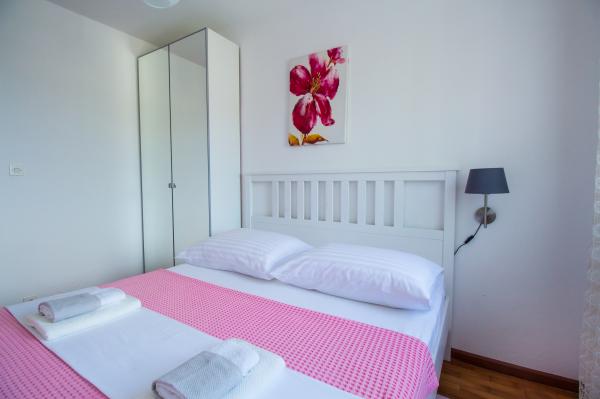 Ik en mijn familie verbleven hier bijna twee weken. Het appartement is zeer smaakvol ingericht en is geschikt voor een gezin, zelfs met drie kinderen. Twee terrassen met een prachtig uitzicht op de Adriatische Zee zijn het vermelden waard. De gastheren waren erg vriendelijk en behulpzaam. Het huis heeft een zeer handige weg naar het strand en het is minder dan 200 meter.