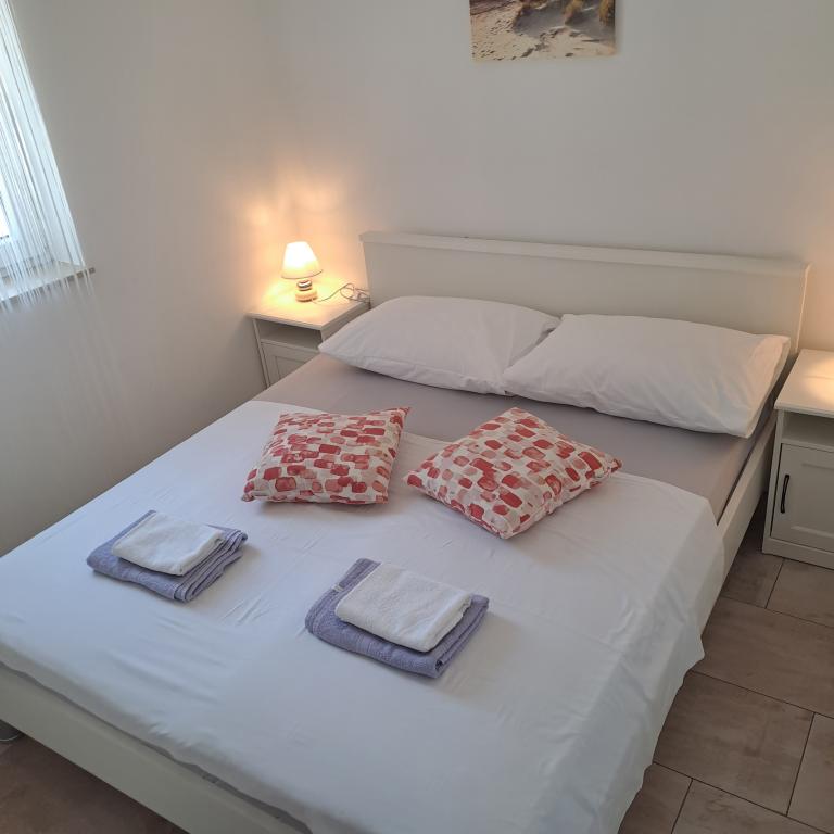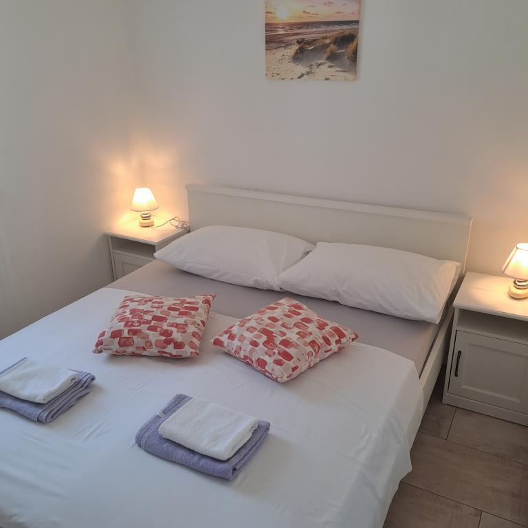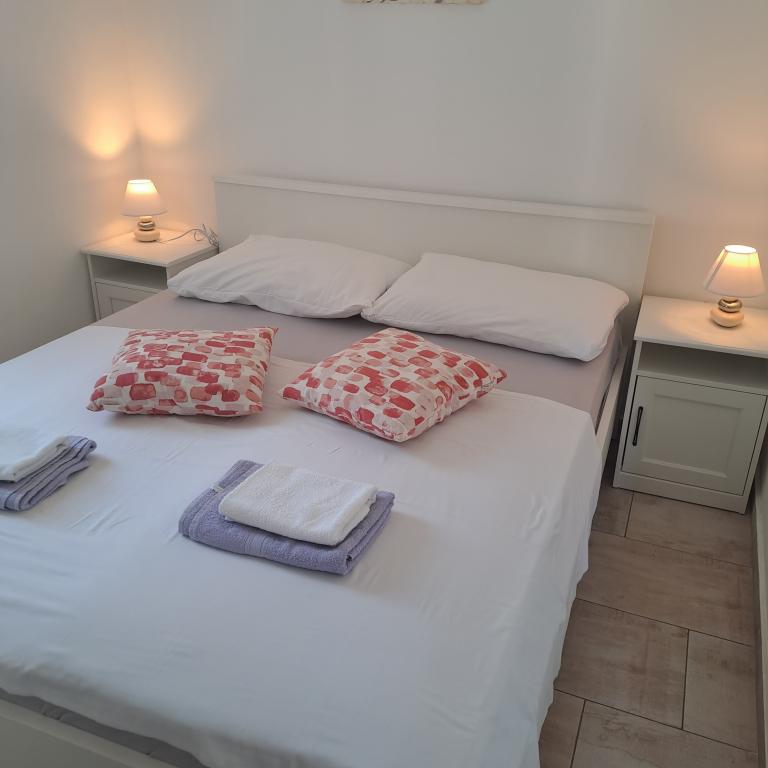 Appartementen Mila-Casa Bianca liggen in een rustige buurt van Medulin, op slechts 900 meter van het centrum en 500 meter van het dichtstbijzijnde strand Bijelica. De accommodatie biedt gratis WiFi, een barbecue en beveiligde parkeergelegenheid. Het is 10 minuten lopen naar de zee (via een pad door het dennenbos) naar de stranden Bijelica en Belvedere, en het centrum van Medulin is op 5-10 minuten loopafstand (de straten zijn eenrichtingsverkeer, dus op de kaart lijkt het verder). Medulin biedt als toeristische bestemming, naast de prachtige stranden, ook andere mogelijkheden voor vermaak en sociale activiteiten, zoals een ranch met paarden (alle informatie is online te vinden), sportvliegtuig- en ballonvaarten, een duikclub, fietspaden door heel Medulin en de omgeving, boottochten, mooie promenades met gezellige evenementen en terrasjes waar je kunt eten en drinken, en een rijk aanbod aan Istrische prosciutto, wijn, olijfolie en alle andere rijkdommen van Istrië.