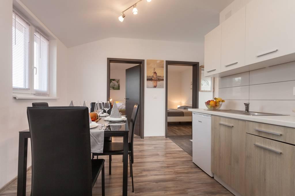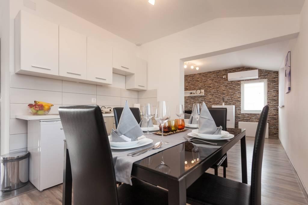 Nieuw gemeubileerd appartement in een rustig deel van Medulin. Het ligt op 800 meter van het strand en op 1,5 km van het centrum van Medulin. Er zijn internet, parkeergelegenheid, airconditioning, wasmachine, tv, barbecue en trampoline beschikbaar.