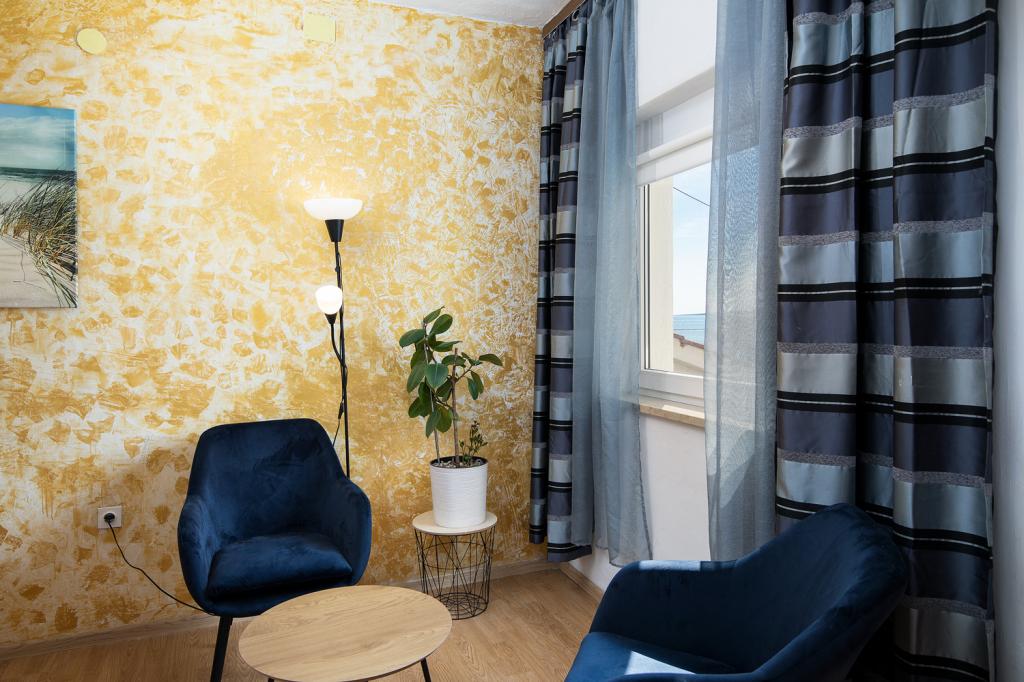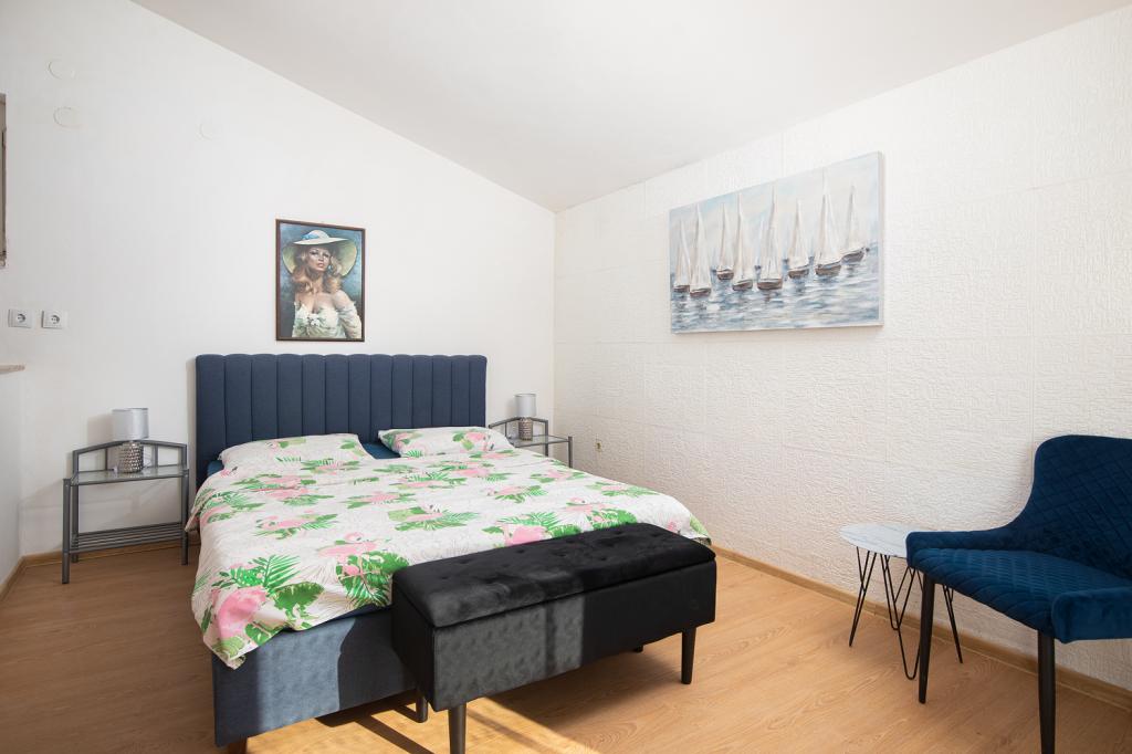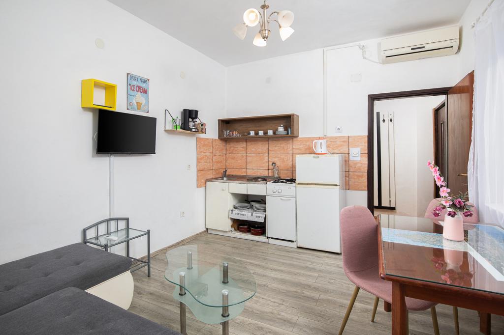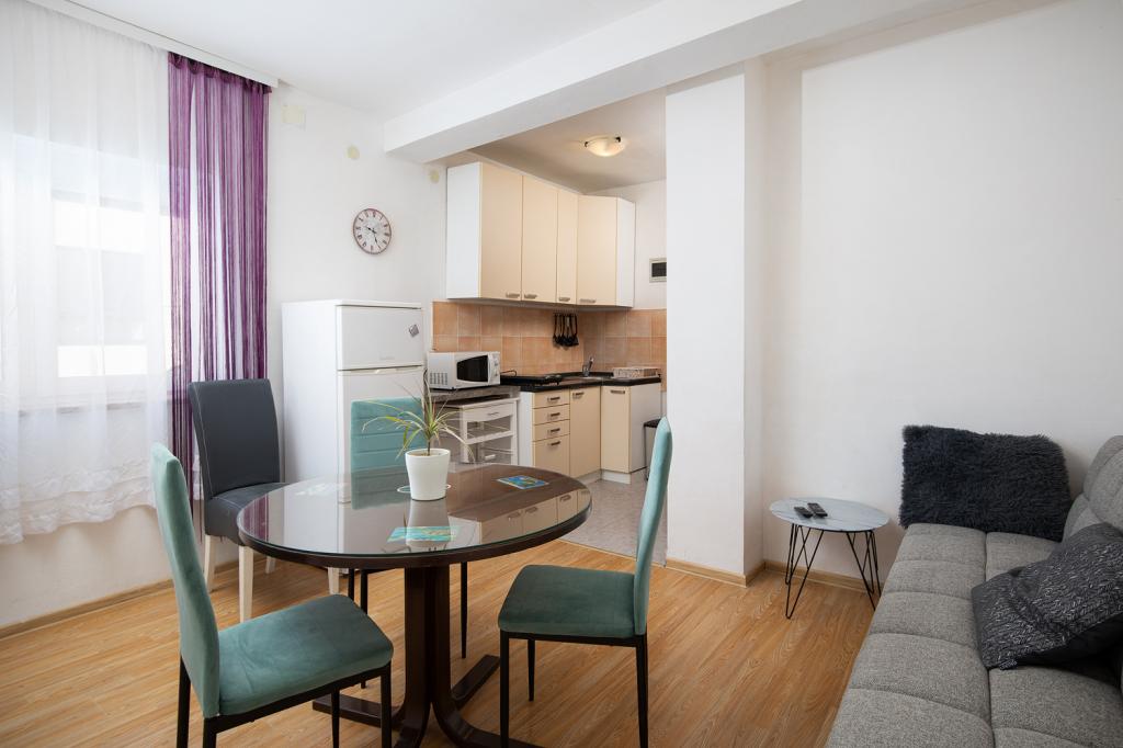 Appartementen op de 1e en 2e verdieping voor 4-5 personen verwijderd van het beroemde zandstrand Bijeca70 meter. De appartementen liggen op 2 minuten lopen van het zomerse stadscentrum. Er is een jachthaven, talloze restaurants, winkels, een entertainmentcentrum voor kinderen en een prachtig dennenbos met een autocamp.