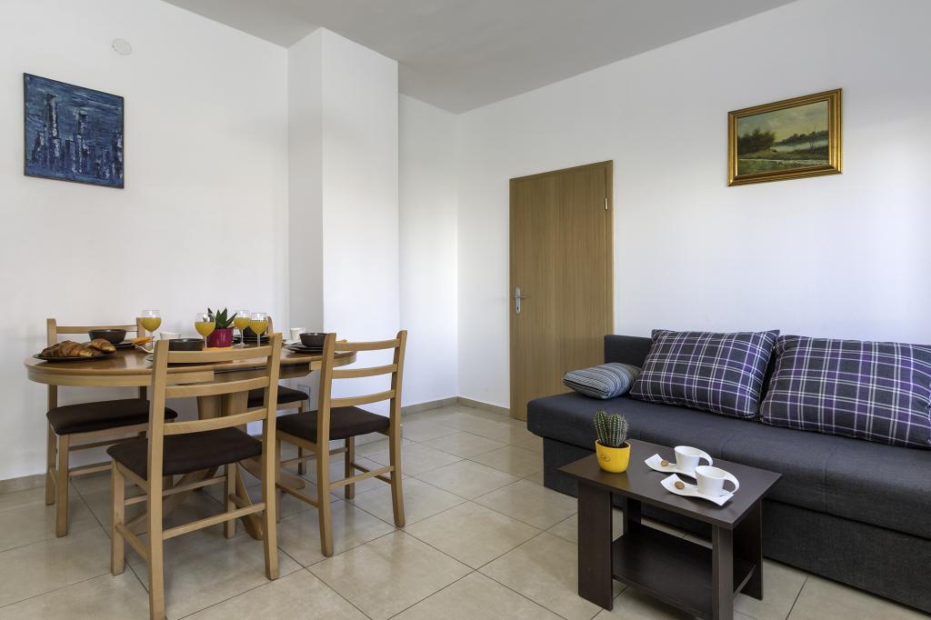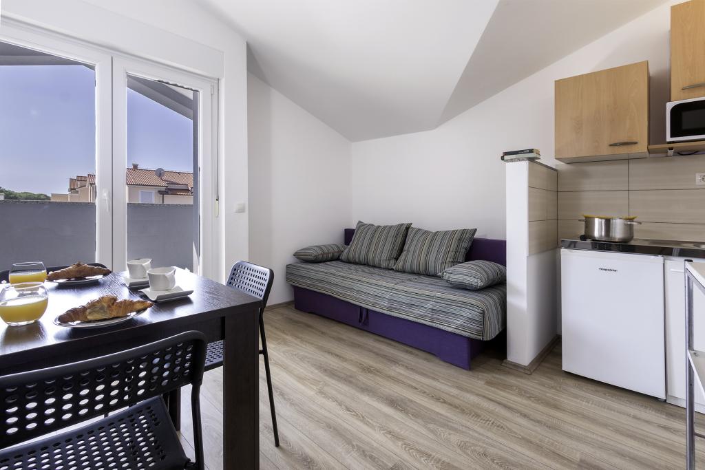 Het familiehuis Jakoplić ligt in Medulin. Er zijn in totaal 7 appartementen in het huis. Drie appartementen bevinden zich op de eerste verdieping en drie op de tweede verdieping. Ze bestaan uit een slaapkamer met een tweepersoonsbed, een woonkamer met een kleine keuken en een slaapbank (1,50x2m). Elk appartement beschikt over een badkamer en een terras. De keuken is van alle gemakken voorzien, waaronder een magnetron, broodrooster, koffiezetapparaat en waterkoker. Op de begane grond bevindt zich een appartement voor 4 personen met een woonkamer en twee slaapkamers. Het appartement beschikt over een kleine binnenplaats met een buitentafel en een barbecue. Elke kamer beschikt over een LCD-tv met satellietzenders en draadloos internet (Wi-Fi). De appartementen zijn voorzien van airconditioning en beschikken elk over een parkeerplaats. Beddengoed is bij de prijs inbegrepen, evenals twee handdoeken per persoon per week. Het strand ligt op slechts 500 meter afstand.