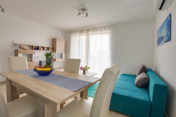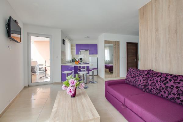 - Nieuwe, moderne appartementen in nieuw gebouw - Ideale locatie naast de zee, strand in de buurt, mooi uitzicht Appartementen rood en groen zijn op de begane grond Appartementen blauw en paars op de eerste verdieping - Het eerste seizoen van het huren! - Alle in de prijs inbegrepen, geen extra kosten voor WiFi, airconditioning, barbecue, parkeerplaats, toeristenbelasting.