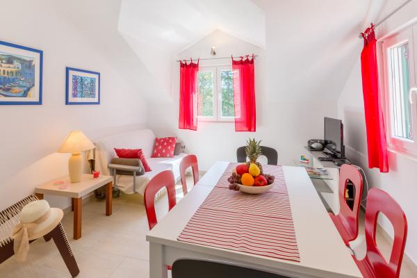 Nieuw gebouwd en modern appartement in een rustige baai aan de zuid-westen van het eiland. Het ligt dicht bij de zee in een dennenbos, ver van het eiland op 15 minuten lopen.