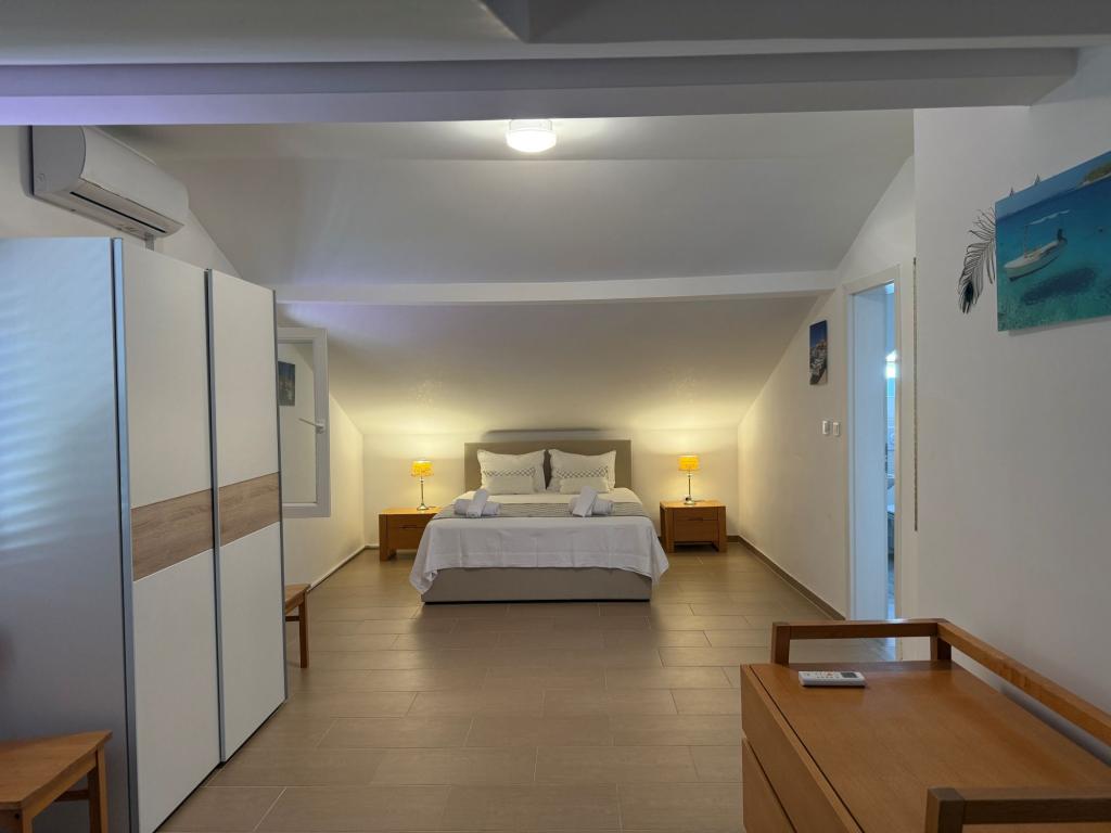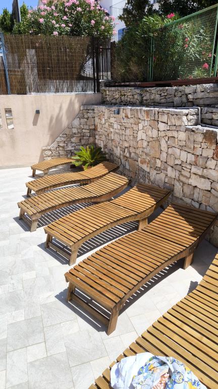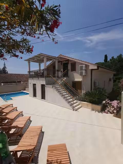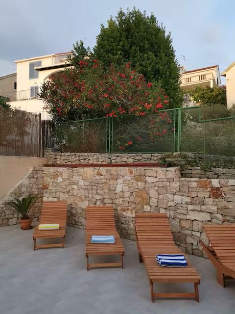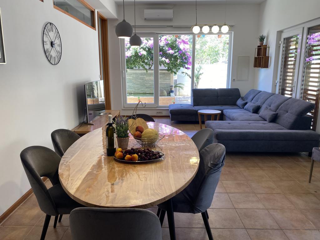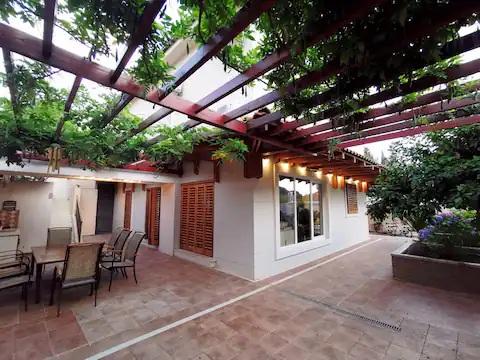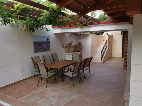Welkom in ons ruime appartement Wisteria, gelegen op de begane grond in de rustige baai van Vlaška. In tegenstelling tot de meeste accommodaties in Milna, is ons appartement zonder trappen of hellingen te bereiken, ideaal voor gezinnen met kinderwagens of fietsers. Onze fietsen staan ook tot uw beschikking om de omgeving te verkennen. Het appartement is voorzien van uitzonderlijk hoge plafonds (3 m) en grote panoramische wanden, wat een zeldzaam gevoel van ruimtelijkheid geeft. Het is uitgerust met een hoogwaardige DanKuchen keuken en biedt compleet comfort met twee toiletten, twee bidets, een bad en een douche. Geniet van onze mediterrane tuin met een traditionele Dalmatische barbecue, een vijver en een weelderige blauweregen die in het voorjaar het hele terrein siert. Binnen een straal van 200 meter vindt u restaurants (OMO, Bago, Plaža) en cafés met een prachtig uitzicht. De catamaranpier ligt op slechts 200 meter afstand, vanwaar u gemakkelijk Split, Hvar of Dubrovnik kunt bezoeken. Er is gratis parkeergelegenheid. Geniet van ons verwarmde zwembad, dat tijdens uw vakantie voor extra luxe en comfort zorgt.