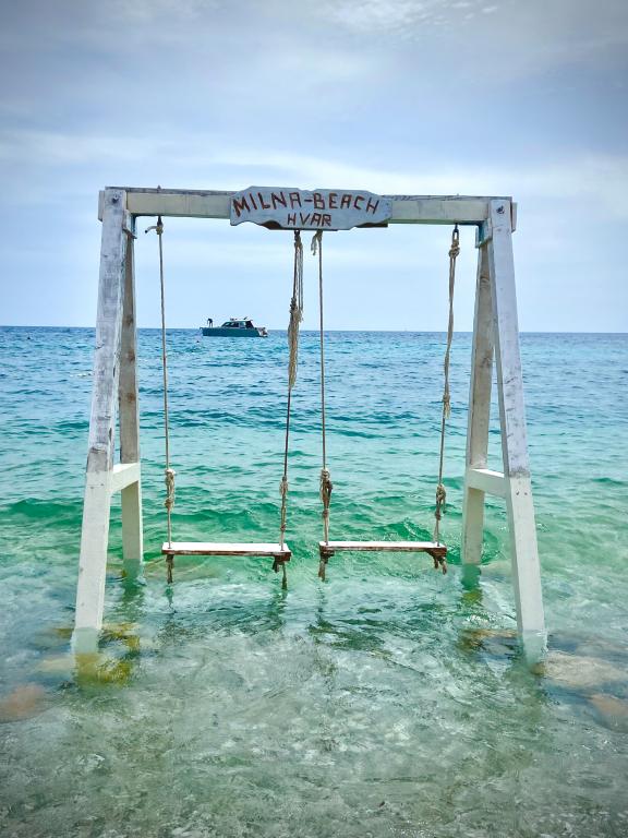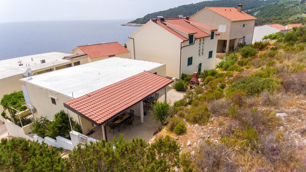 Twee- en vierpersoonskamers en een appartement met een groot terras bevinden zich in een rustig deel van Milna. Het ligt op 5 minuten van het centrum en het eerste strand. Geschikt voor gezinnen met kinderen. De nabijheid van de stad Hvar (3 km) is ook geschikt voor jongeren, waar ze overdag genieten van de voordelen van het kleine stadje Milna en verborgen baaien om te zwemmen, en 's avonds biedt de stad Hvar hen onvergetelijk nachtamusement .