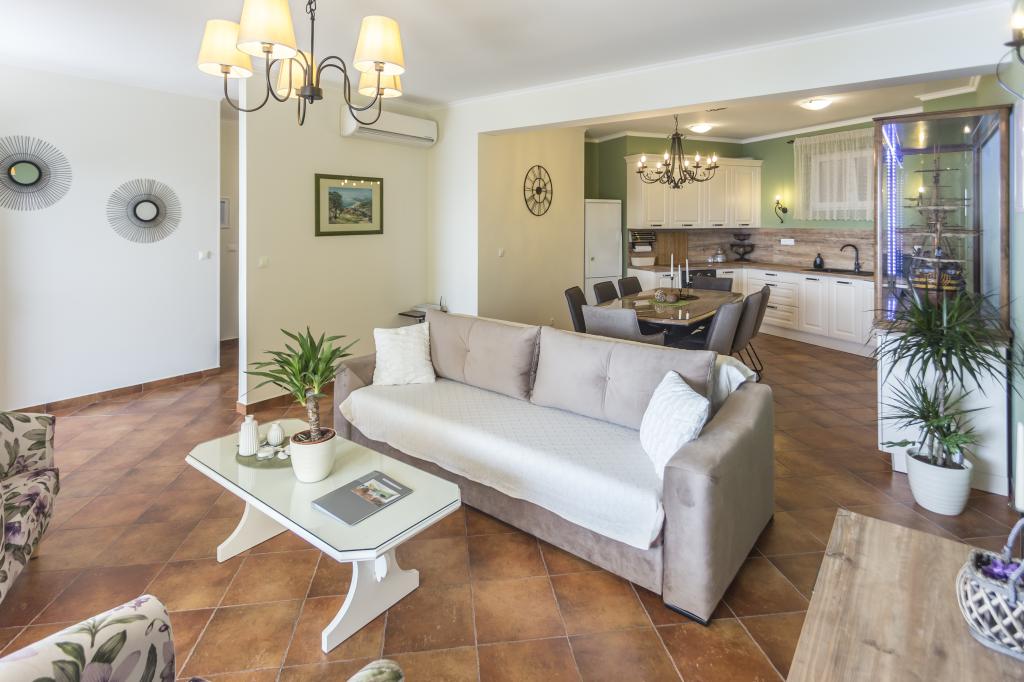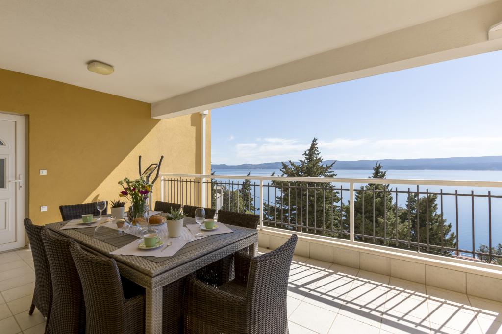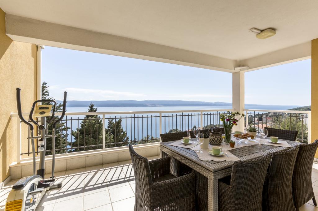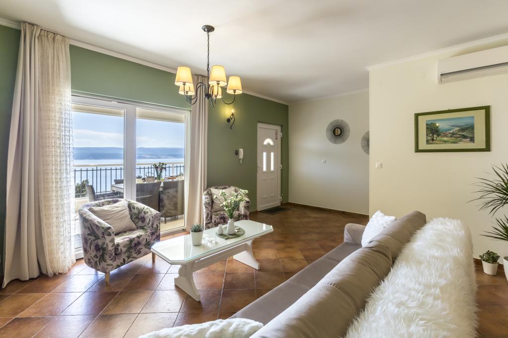 Appartement VICTORY bevindt zich in een vrijstaande villa vlakbij het rustige dorpje Mimice met een prachtig uitzicht op zee aan de voorzijde en prachtige bergachtige natuur achter de villa. Een ideale ruimte en locatie voor gezinnen die willen ontsnappen aan de drukte en lawaaierige toeristengebieden. Lokale stranden liggen op slechts 10 minuten lopen, inclusief restaurants, strandbars en een lokale markt. Het appartement is luxueus ingericht met gloednieuw meubilair en alle benodigde apparatuur. Het appartement is 120 m² groot, biedt plaats aan maximaal 8 gasten en bestaat uit: *Drie (3) slaapkamers voorzien van airconditioning en nieuw meubilair. *Twee (2) badkamers met toilet en wasmachine. *Grote eetkamer (voor 8 personen) met een gloednieuwe keuken voorzien van al het benodigde servies. *Grote woonkamer met een grote bank en twee fauteuils. *Groot balkon (20 m²) met een prachtig uitzicht op zee en een eettafel voor 8 personen. Het appartement is uitgerust met een grote 55-inch smart led-satelliettelevisie en audiosysteem, met airconditioning.