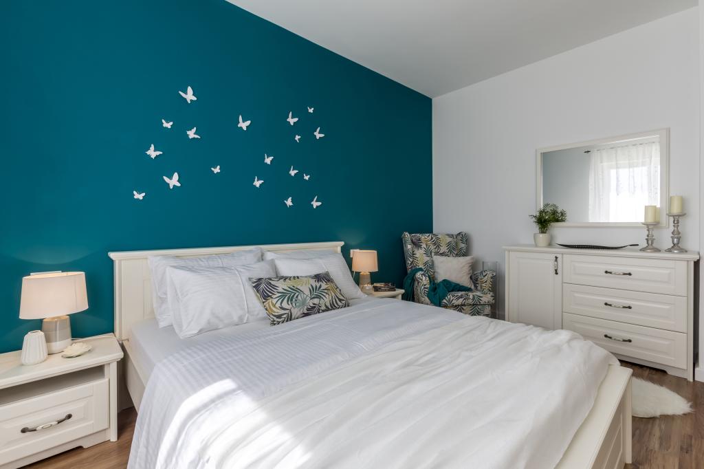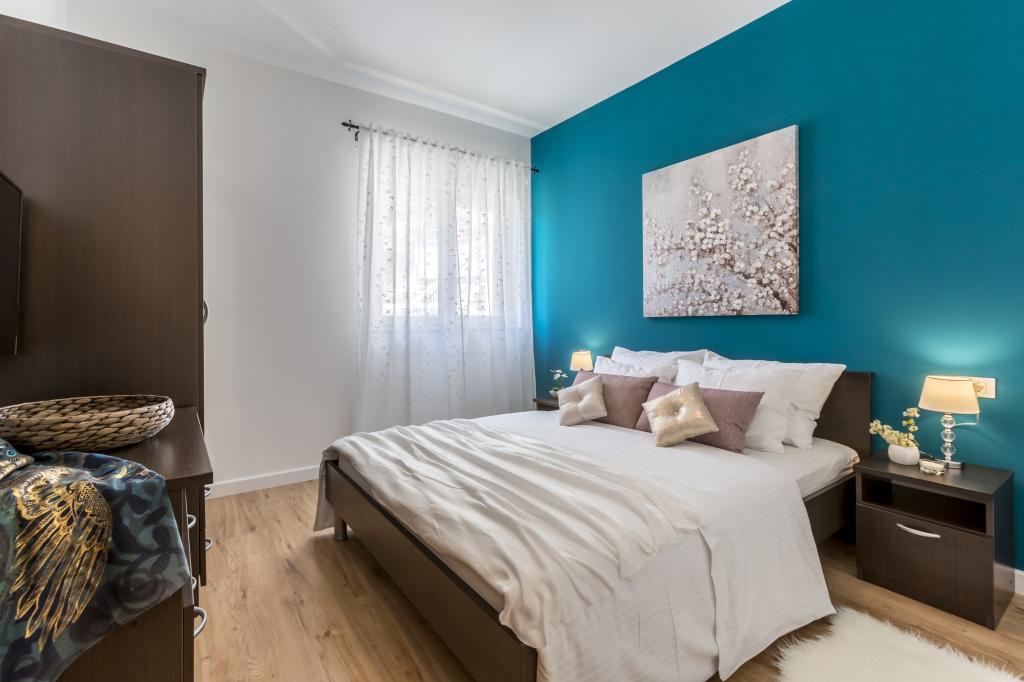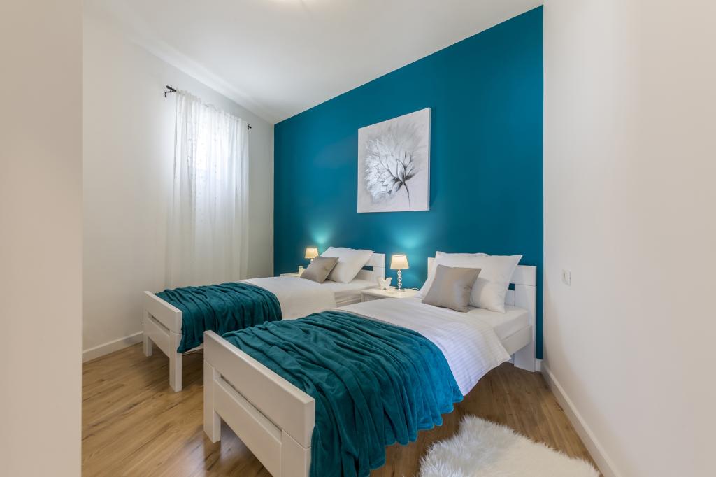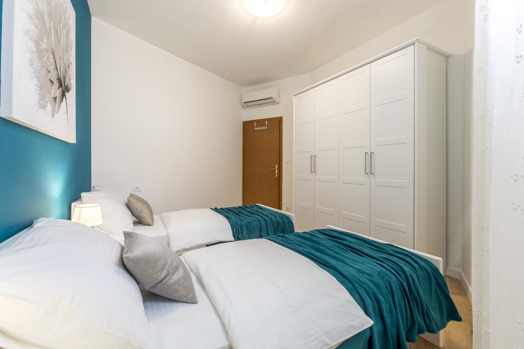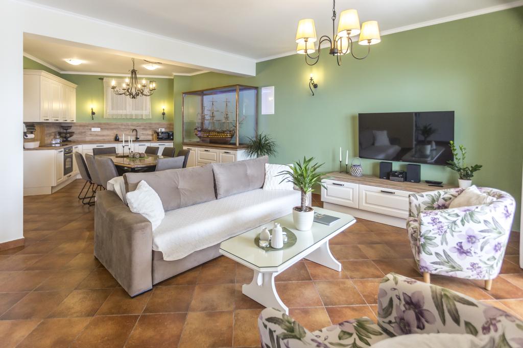 Appartement VICTORY bevindt zich in een vrijstaande villa vlakbij het rustige dorpje Mimice met een prachtig uitzicht op zee aan de voorzijde en prachtige bergachtige natuur achter de villa. Een ideale ruimte en locatie voor gezinnen die willen ontsnappen aan de drukte en lawaaierige toeristengebieden. Lokale stranden liggen op slechts 10 minuten lopen, inclusief restaurants, strandbars en een lokale markt. Het appartement is luxueus ingericht met gloednieuw meubilair en alle benodigde apparatuur. Het appartement is 120 m² groot, biedt plaats aan maximaal 8 gasten en bestaat uit: *Drie (3) slaapkamers voorzien van airconditioning en nieuw meubilair. *Twee (2) badkamers met toilet en wasmachine. *Grote eetkamer (voor 8 personen) met een gloednieuwe keuken voorzien van al het benodigde servies. *Grote woonkamer met een grote bank en twee fauteuils. *Groot balkon (20 m²) met een prachtig uitzicht op zee en een eettafel voor 8 personen. Het appartement is uitgerust met een grote 55-inch smart led-satelliettelevisie en audiosysteem, met airconditioning.
