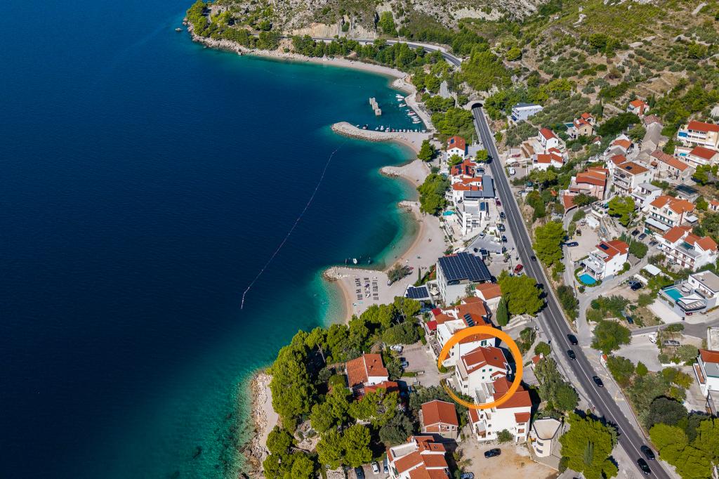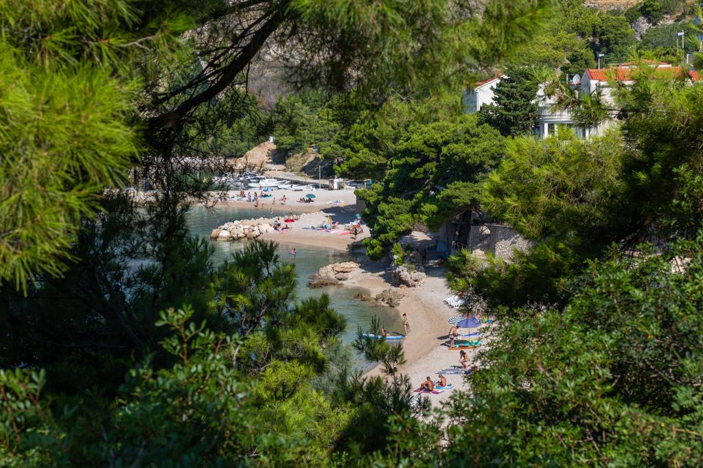 Welkom bij Apartments Bosiljka in Medića – een kleine Dalmatische oase van rust tussen Omiš en Makarska. Slechts een paar stappen van de kiezelstranden en de kristalheldere zee word je verwelkomd door gastheren die hun gasten ontvangen als familie. De privétoegang tot de zee en de gratis parkeergelegenheid bij het huis maken je verblijf zorgeloos vanaf de eerste minuut. Op de terrassen en balkons hangt de geur van zee en pijnbomen, terwijl je blik verdwijnt in het blauw van de horizon. Alles wat je nodig hebt is een goed boek… en een glimlach. De locatie is het perfecte vertrekpunt voor uitstapjes: Omiš (15–20 min), Split en Trogir voor cultuur en sfeervolle straatjes, Makarska voor de levendige boulevard, de rivier Cetina voor rafting en de Biokovo Skywalk voor adembenemende uitzichten. In de buurt vind je een winkel, postkantoor, fruitkraam, restaurants en cafés – alles “binnen sandaalbereik”.