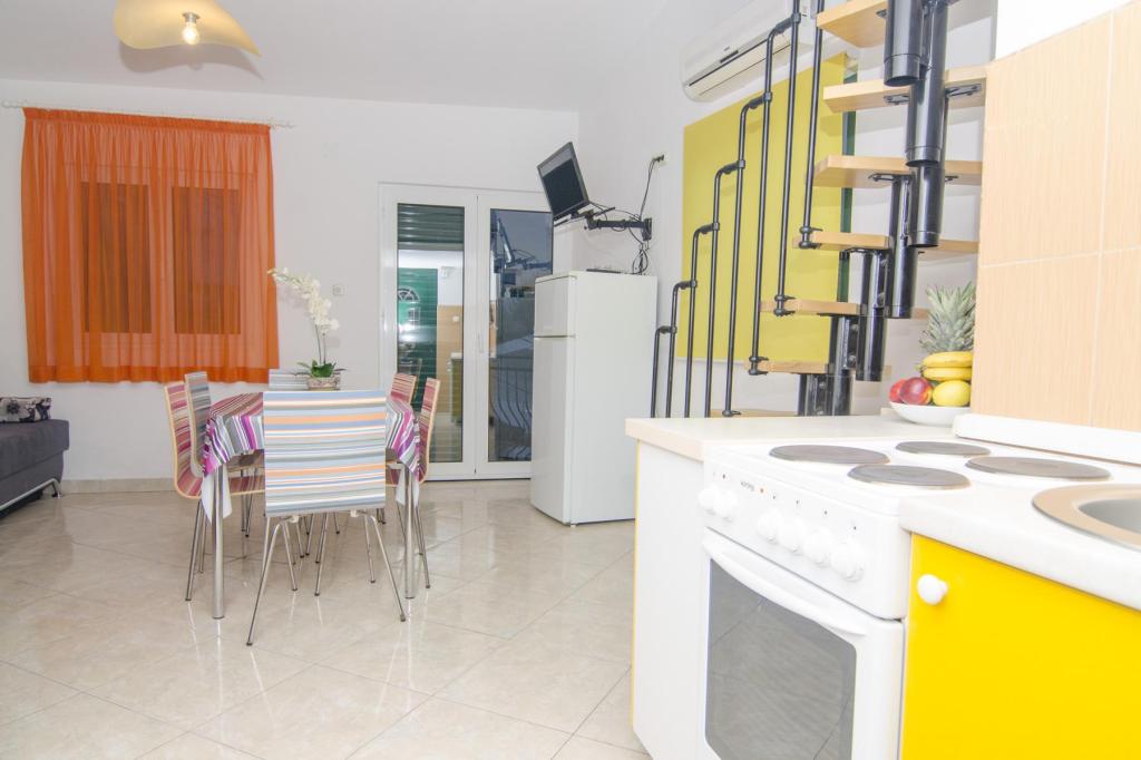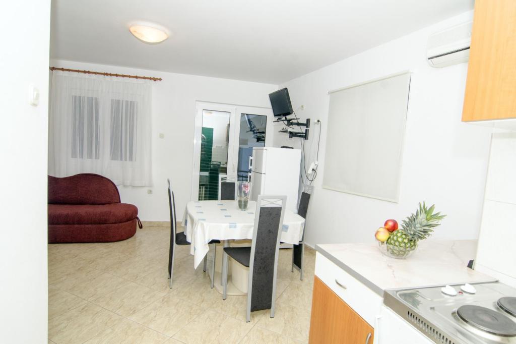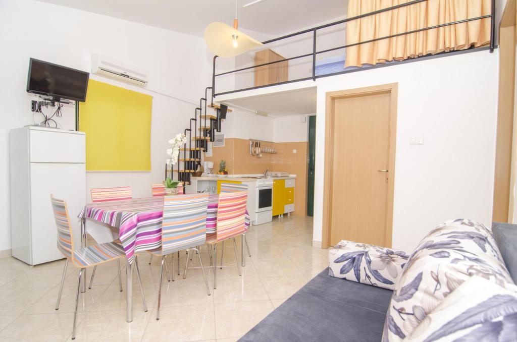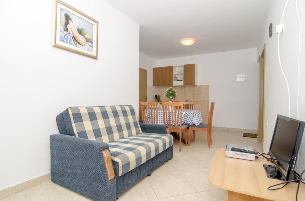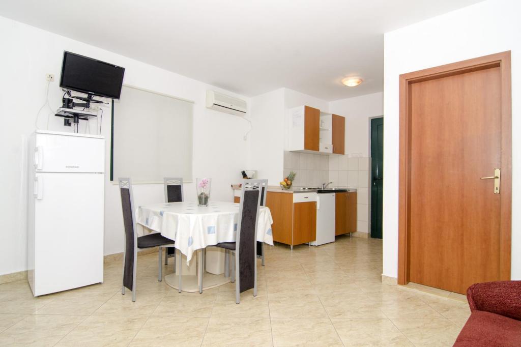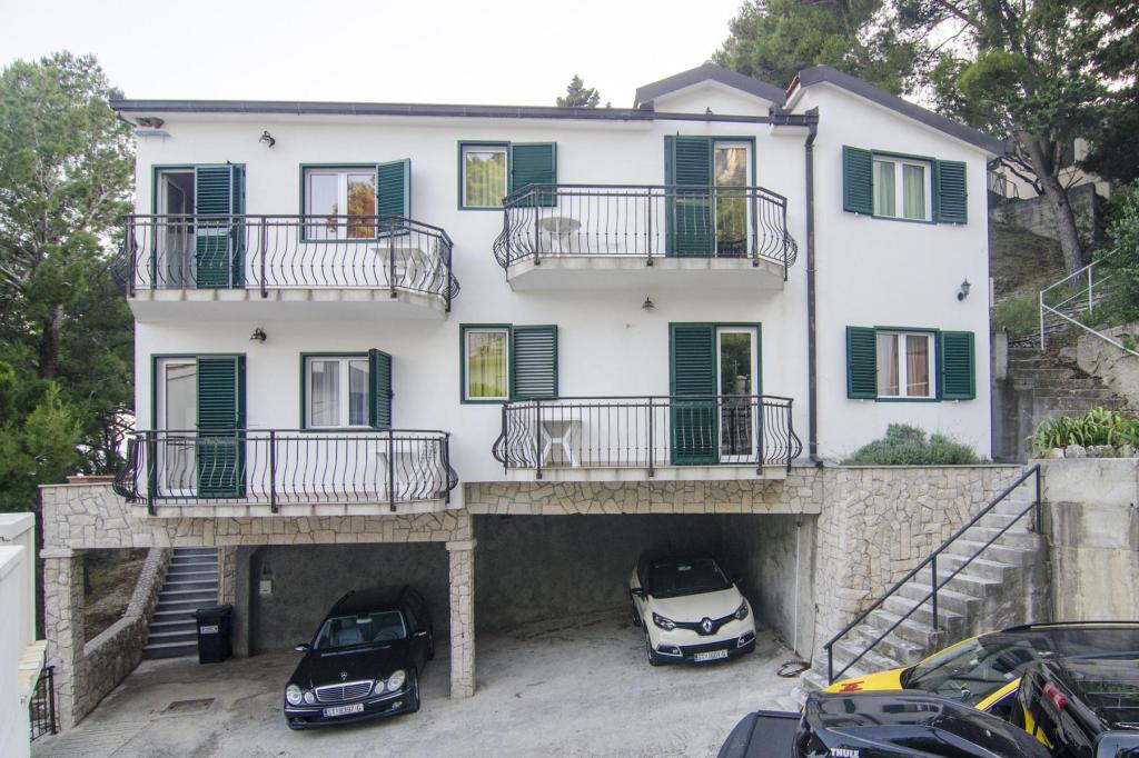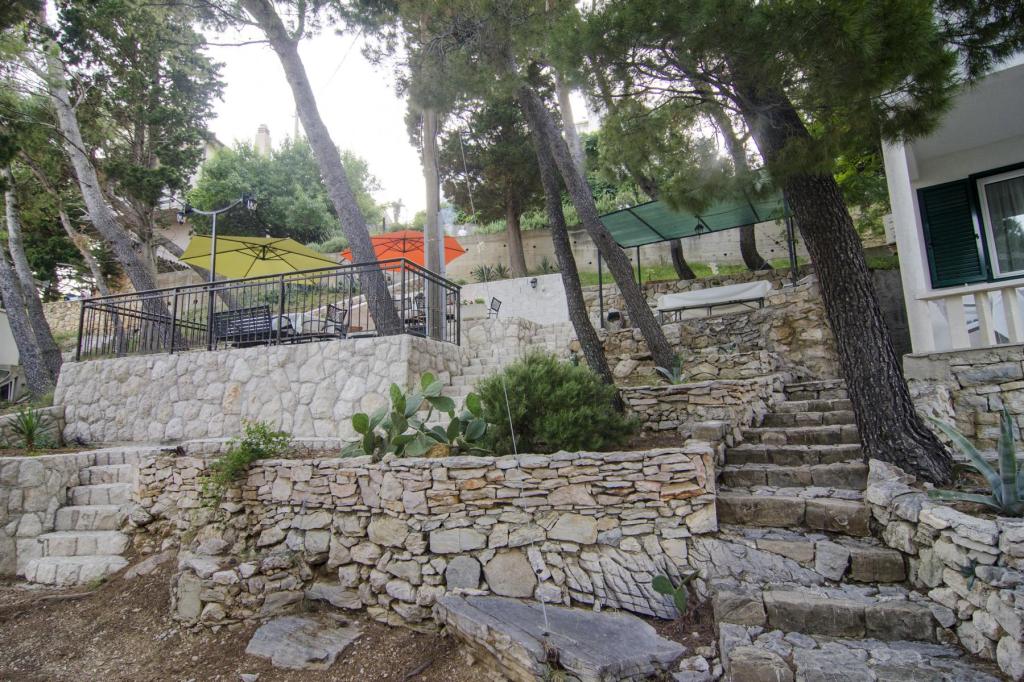 Prachtige locatie 30 m van de zee. De appartementen zijn omgeven door een dennenbos en binnen het gebouw zijn er gedeelde terrassen met barbecue die door de gasten kunnen worden gebruikt. Elk appartement heeft een eigen balkon met uitzicht op zee. Volledig uitgerust, voorzien van airconditioning, internet, parkeren in uw eigen garage.