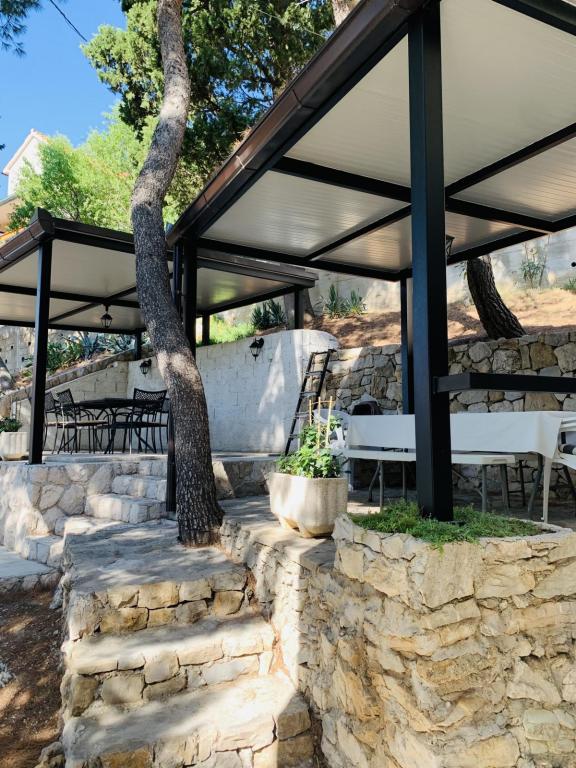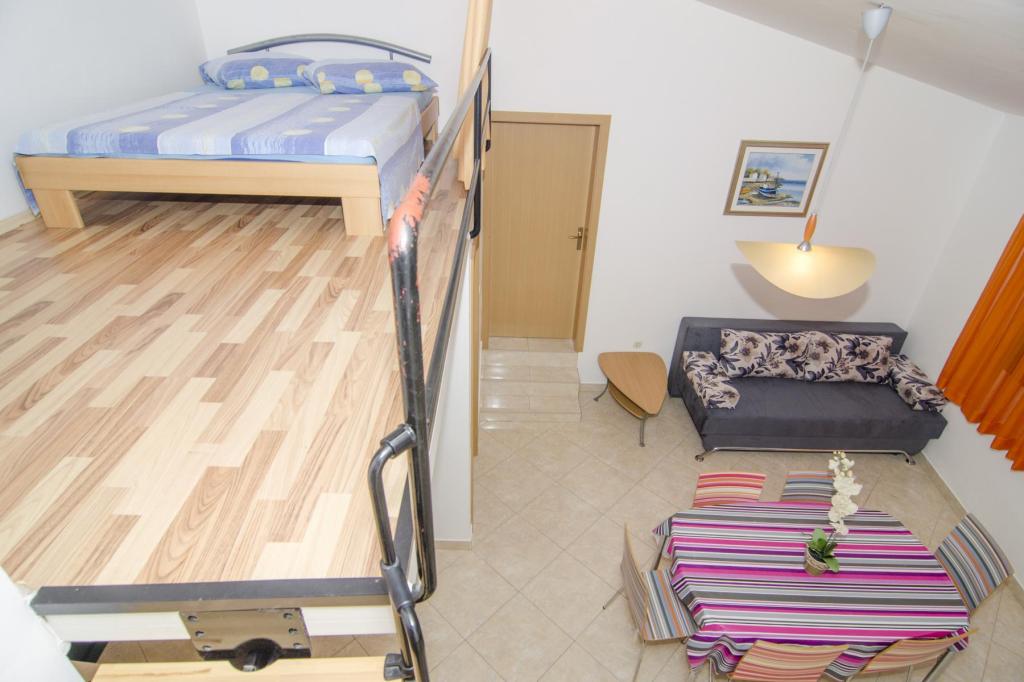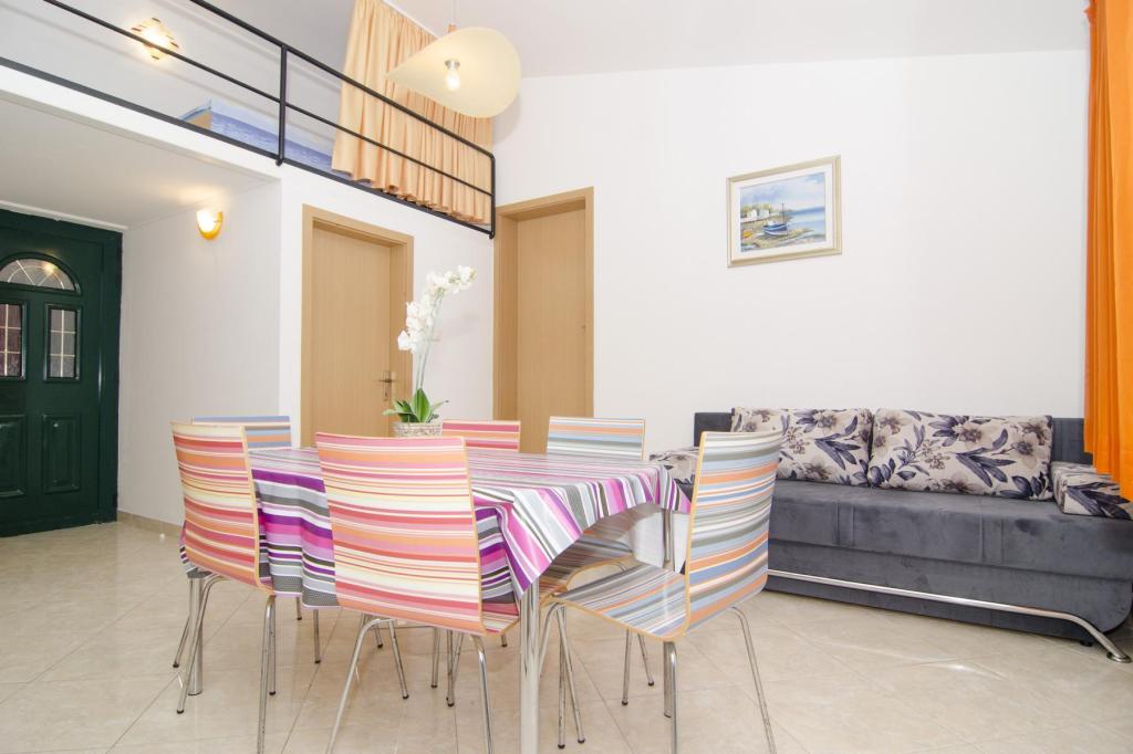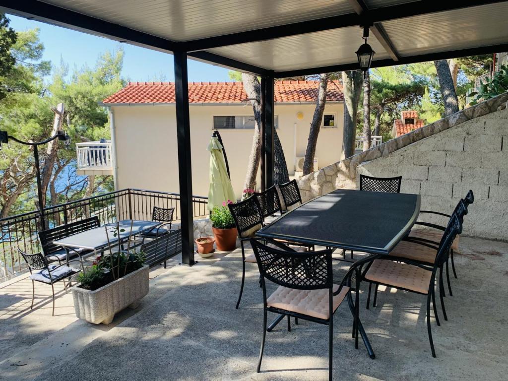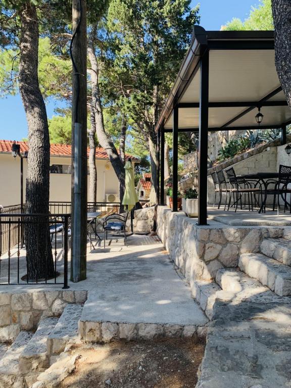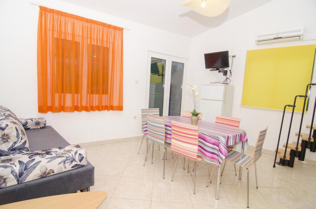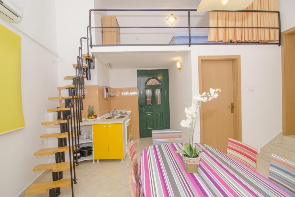 Prachtige locatie 30 m van de zee. De appartementen zijn omgeven door een dennenbos en binnen het gebouw zijn er gedeelde terrassen met barbecue die door de gasten kunnen worden gebruikt. Elk appartement heeft een eigen balkon met uitzicht op zee. Volledig uitgerust, voorzien van airconditioning, internet, parkeren in uw eigen garage.