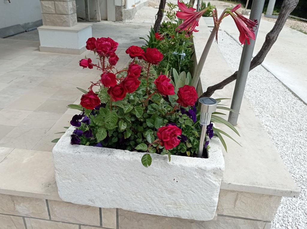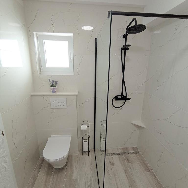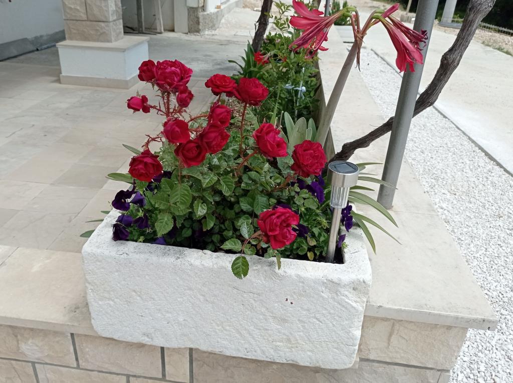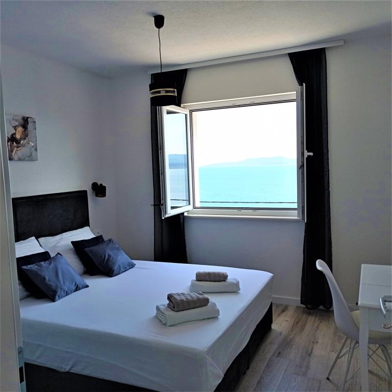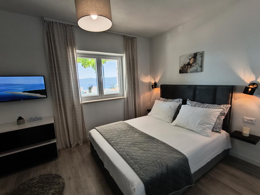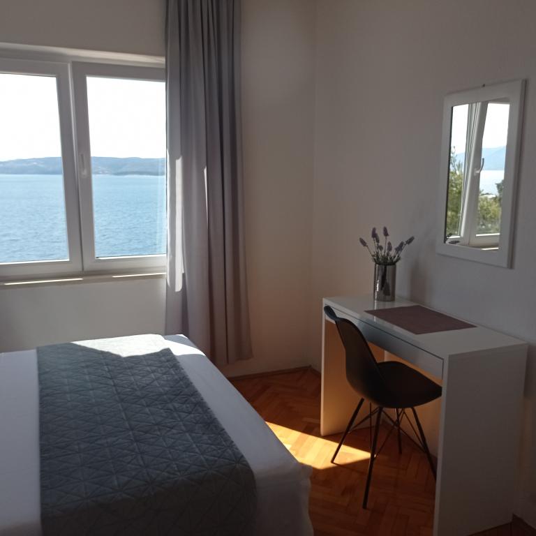 Wij zijn hier nu twee keer geweest, de accommodatie is prachtig, schoon, volledig uitgerust met airconditioning in elke kamer, een vaatwasser en wat ik het meest waardeer is de wasmachine. Mirko, Danijela en hun moeder zijn geweldige, vriendelijke mensen, altijd vrolijk en behulpzaam. Het uitzicht vanaf het terras is onvervangbaar. Ik heb niets te bekritiseren. Het voordeel is dat je met een strak figuur terugkomt, want de weg vanaf het strand is behoorlijk heuvelachtig, maar ik denk dat dat ook een voordeel is.