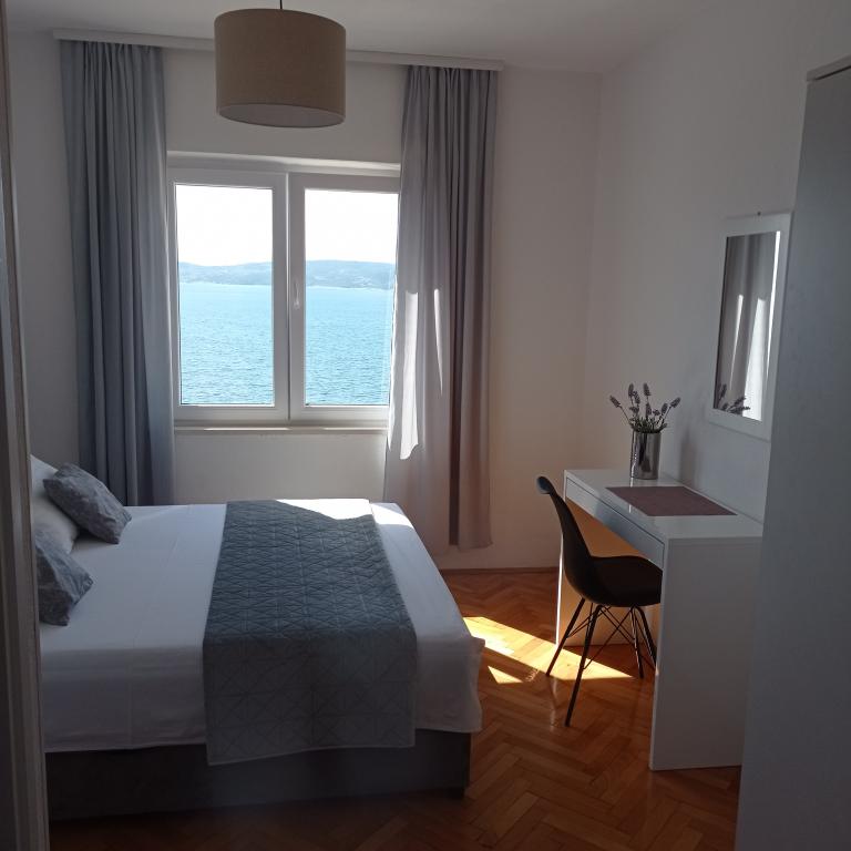 Ik ben heel blij met het verblijf van dit jaar in Kroatië in het appartement van Danijela en Mirko! Appartement gerenoveerd en super ingericht, uitgerust. De indeling van de slaapkamer en twee badkamers zorgde voor een comfortabel functioneren van twee gezinnen in het appartement. Perfect gelegen terras met uitzicht op zee - niet grenzend aan andere terrassen, gaf een gevoel van privacy zoals in een vrijstaand huis. Zeer aardige gastheren, met wie we vanaf het begin van de reservering en de vooruitbetaling een zeer goede communicatie hadden. Ze verwelkomden ons hartelijk met zelfgemaakte orahovica, en aan het einde van het verblijf werden we getrakteerd op heerlijke pannenkoeken gemaakt door Mirko's moeder en zelfgemaakte rakija :) Naar het dichtstbijzijnde mooie en kindvriendelijke strand te voet in maximaal 10 minuten! In de omgeving van het strand zijn er leuke bars en pubs met een sfeer en zeer goed eten en goede service, zoals Emi bar & restaurant. Vlakbij is ook het oude centrum van Mimic met een leuk visrestaurant, Carevi Dvori, een bezoek waard. Kortom een plek die perfect is voor een ontspannen vakantie :)
