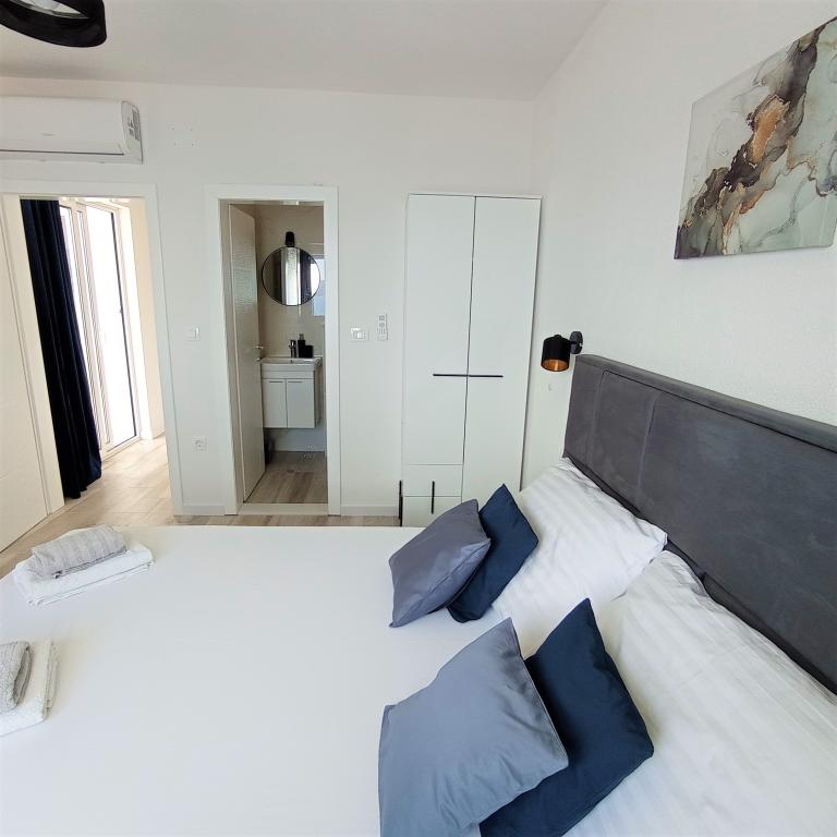 A4 superior - nieuw, modern appartement op de 2e verdieping van het huis met een prachtig uitzicht op de zee, de eilanden en de stad. Capaciteit 2+2. Volledig uitgerust en voorzien van airconditioning in elke kamer. A4+2 superior - nieuw, modern appartement op de 2e verdieping. Twee slaapkamers, twee badkamers, keuken, eetkamer, woonkamer en een groot terras met uitzicht op de zee en de eilanden. Airconditioning in elke kamer. A4+4 - groot en ruim appartement op de 1e verdieping van het huis. Volledig uitgerust en voorzien van airconditioning in elke kamer. Het bestaat uit twee grote slaapkamers (met badkamers), woonkamer, keuken, eetkamer, drie badkamers, terras en balkon met een prachtig uitzicht op de zee en de eilanden. A4+1 - appartement op de begane grond. Het bestaat uit twee ruime slaapkamers, een badkamer en een keuken met een eetkamer. Vanaf het grote terras, dat in natuurlijke schaduw ligt, is er uitzicht op de zee en de eilanden. A2+2 - appartement op de begane grond, met een terras. Het bestaat uit een slaapkamer, badkamer, hal, keuken en eetkamer met een bed. Luchtverfrissend. Zeezicht.