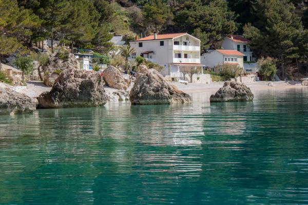 Een prachtige plek voor een vakantie. De locatie van het appartement is geweldig, op slechts een steenworp afstand van het strand. Het appartement heeft 2 balkons, vanwaar u kunt genieten van een prachtig, betoverend uitzicht en kunt luisteren naar het geluid van de zee. De zee is glashelder. Kleine steentjes in zee, en nog wat verder zand. De uitrusting van het appartement is van een goed niveau, we hadden alles wat we nodig hadden. De eigenaren zijn geweldige mensen. Ze communiceerden tijdens ons verblijf met ons om te zien of we iets nodig hadden. We waren met 2 gezinnen, een gezin van drie en een gezin van twee, wat ons beviel met de indeling van de twee kamers. Eén badkamer was voor ons genoeg. Voor de ingang van het appartement bevindt zich een groot terras met barbecue. Ook springkussens en een paddleboard konden we daar zonder problemen achterlaten. Het geweldige restaurant "Val" was gemakkelijk te bereiken. Het café boven de klif is ook geweldig. Je kunt vanaf de klif de zee in springen. Ook hebben we een paar dagen prachtige grote golven gehad. Er is slechts één supermarkt in de stad, die je via de trap naar de hoofdweg moet lopen. Maar we waren met de auto, dus we kochten twee keer zoveel zodat we niet elke dag hoefden te gaan. Maar het is beter om b.v. in Omiš of in Baška vode, als je ergens op reis gaat. We zullen deze prachtige plek onthouden. Het is een plek om tot rust te komen, het is er rustig, er zijn weinig mensen en wij komen hier zeker nog eens terug.