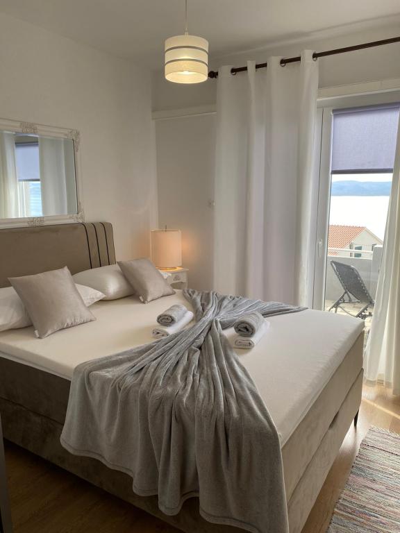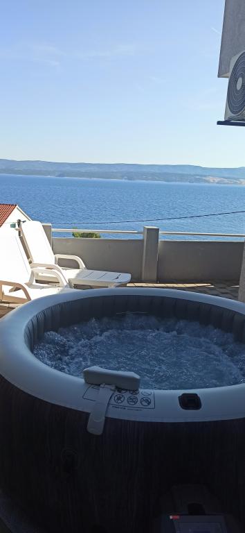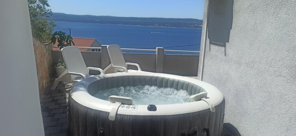 We bezoeken deze plek al 6 jaar en het is absoluut een geweldige plek voor een rustige vakantie. Vanuit het appartement is echt een mooi uitzicht op zee en het strand is dichtbij (ongeveer 3 minuten van uw kamer). Als je een uitstapje wilt maken en een aantal andere plaatsen in de omgeving wilt bezoeken, is de grote keuze bijvoorbeeld een haven in Mimice, een nabijgelegen kerk met mooi uitzicht of de stad Split. Zee is warm en absoluut kristalhelder met een prachtig berglandschap. Het strand heeft een douche en twee bars met echt lekker ijs en koffie. Als u van romantisch zwemmen houdt, kunt u 's avonds naar het strand gaan omdat er niemand is. Appartement is goed voorbereid en kamers zijn altijd echt schoon. Deze plek is geweldig voor een leuke vakantie en onze familie raadt het iedereen aan. In het bijzonder willen we de hele familie van Jašaragic hartelijk bedanken omdat ze altijd heel zachtaardig voor ons zijn en zelfs als we een ziek kind hebben, waren ze erg behulpzaam. Absoluut een aanrader!