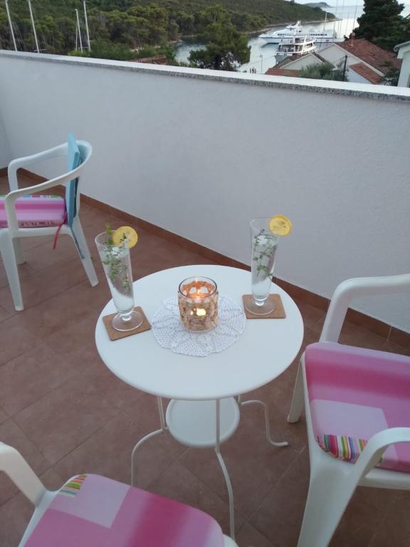 De studio-appartementen Bonaca liggen direct aan de haven, op de tweede rij aan zee, in een rustige omgeving met uitzicht op zee. De appartementen zijn ideaal voor stellen of vrienden. Beide appartementen hebben een gedeeld terras. De appartementen zijn voorzien van airconditioning en gratis WiFi. De appartementen liggen op 2 minuten lopen van de haven. In de buurt bevinden zich een koffiebar, 2 restaurants, een pizzeria en een kleine kiosk met groente en fruit. Het is 10 minuten lopen naar het stadscentrum en het strand. Elk appartement is geschikt voor 2 personen. Niet geschikt voor kleine kinderen. Huisdieren zijn niet toegestaan. De minimale verblijfsduur bedraagt 7 dagen.