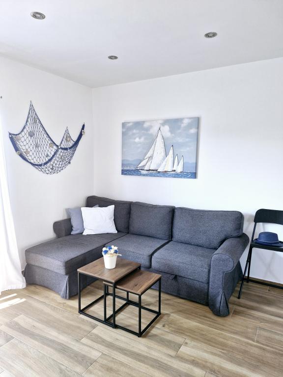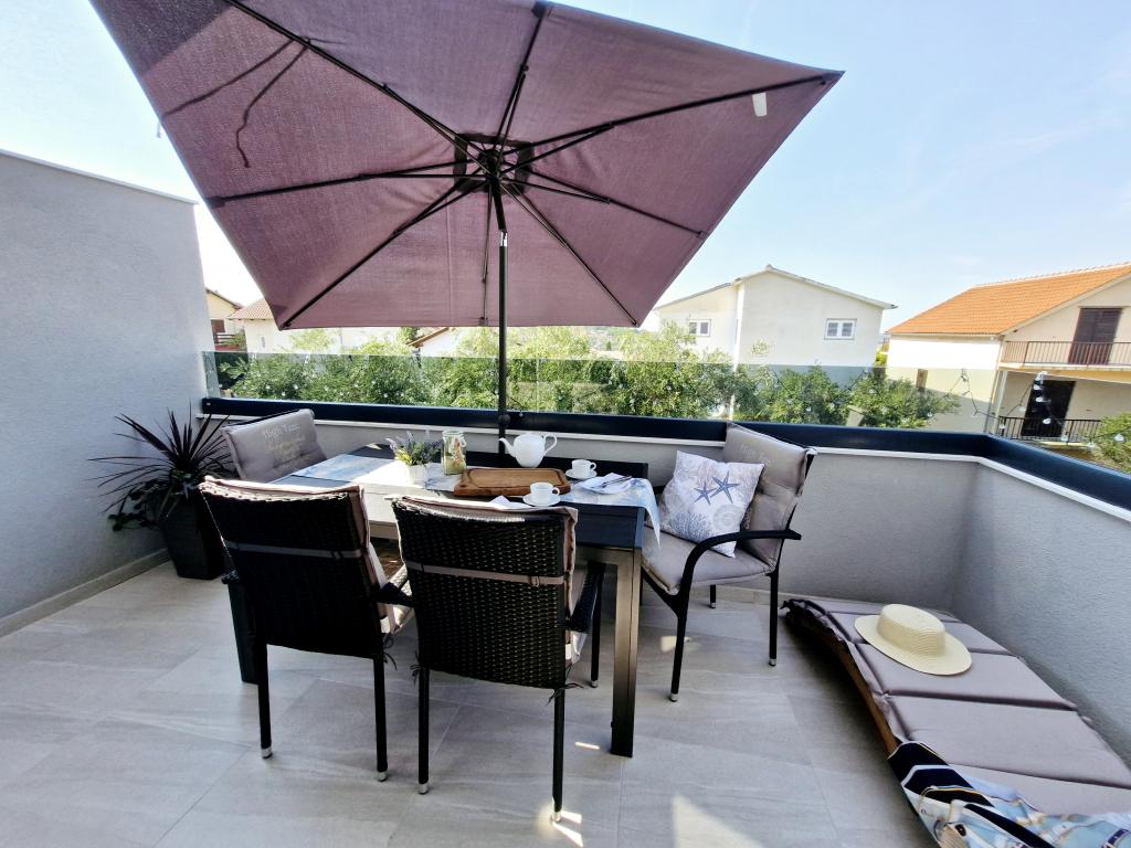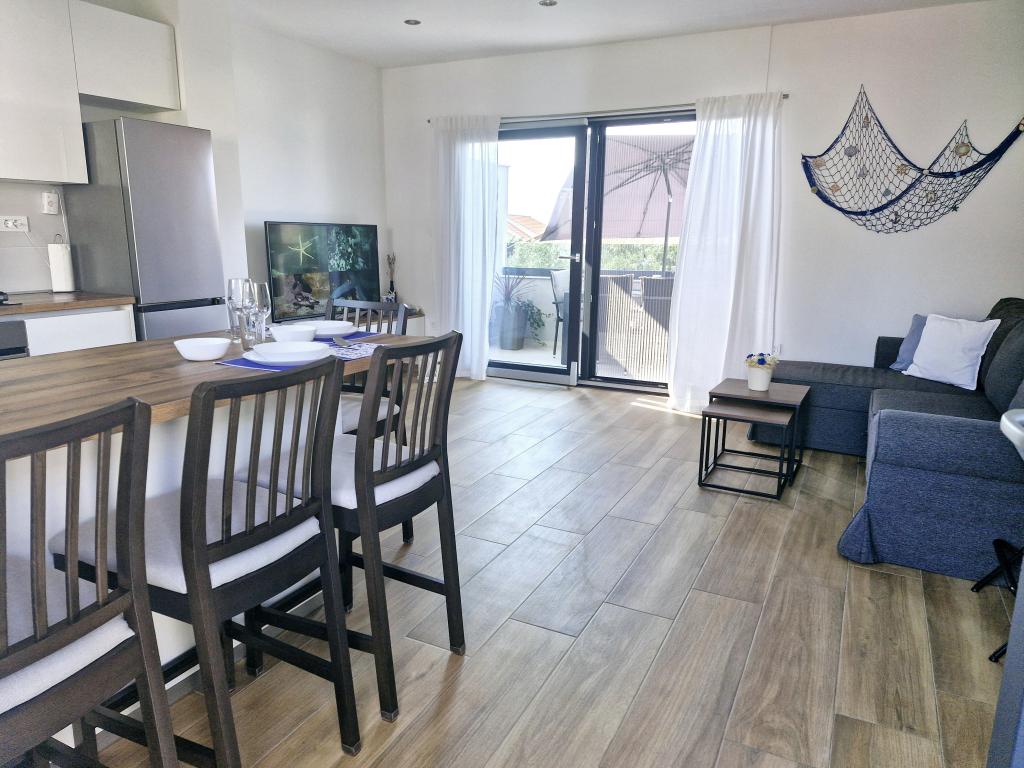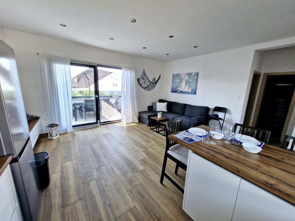 Het appartement is gelegen op het eiland Murter in de stad Murter. Het is verbonden met het vasteland door een brug, die de verkeerscommunicatie volledig verzekert. Het appartement is gelegen in een onlangs gerenoveerd huis en heeft een oppervlakte van 50 m2. Het appartement biedt plaats aan maximaal 3 personen (2+1). Het is de eerste verdieping van een huis gelegen in een rustige straat en biedt daardoor rust en discretie voor een aangename vakantie. Het bestaat uit een keuken/eetkamer/woonkamer, een slaapkamer, een badkamer en een balkon met uitzicht op zee. In de slaapkamer staat een tweepersoonsbed (afmetingen 160x200cm), en in de woonkamer staat een comfortabele slaapbank. Het is uitgerust met alle huishoudelijke apparaten, 4k Android en satelliettelevisie, internet (Wi-Fi), airconditioning en een parkeerplaats onder videobewaking. Er is een wasmachine beschikbaar om uw wasgoed schoon te houden tijdens uw verblijf in ons appartement. Het gebouw is niet ontworpen voor rokers, maar heeft wel een balkon waar roken is toegestaan. Wij besteden veel aandacht aan het onderhoud van de appartementen.
