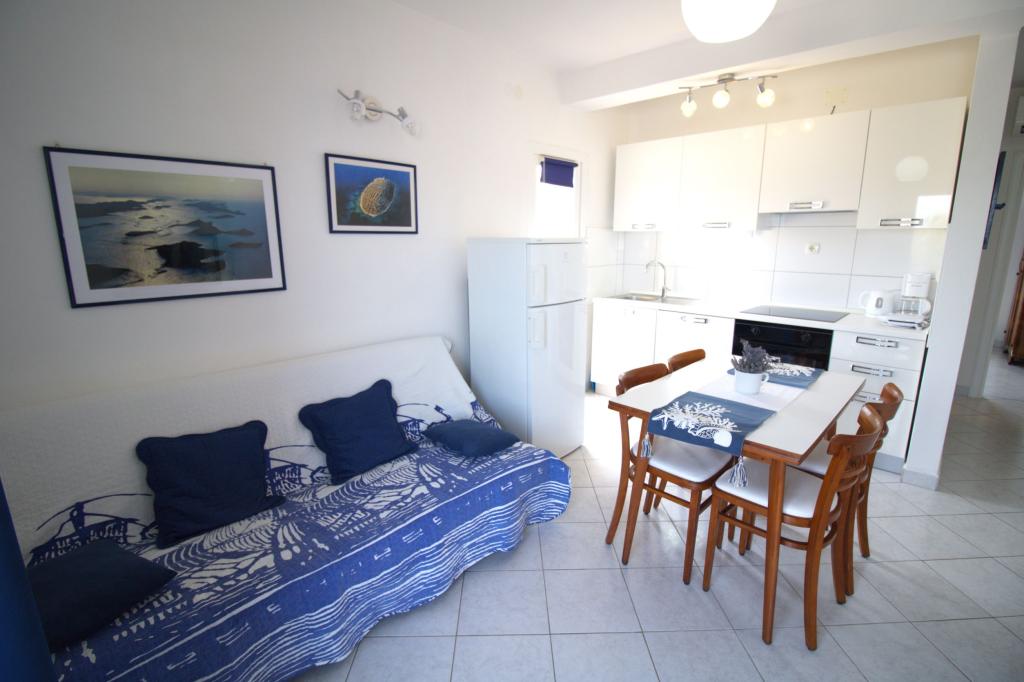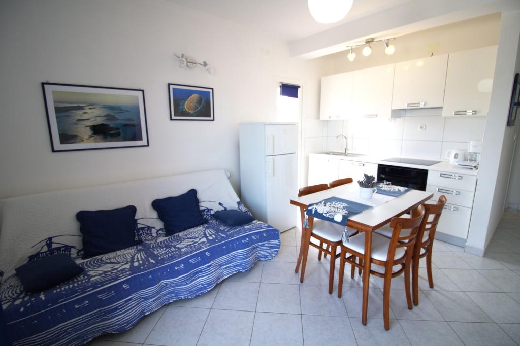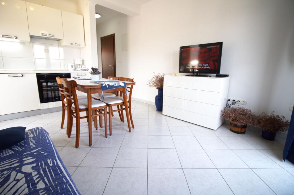 Onlangs gerenoveerd en volledig gemeubileerd appartement, eerste rij aan zee. Het appartement bestaat uit een slaapkamer waar twee volwassenen kunnen slapen. Het appartement heeft een woonkamer met een bank die gebruikt kan worden als extra bed. Parkeren is gratis in de tuin voor het appartement. Het appartement heeft uitzicht op zee en de hele baai van Murter. Het is gelegen op een uitstekende locatie, het is max. 10 minuten loopafstand van het zandstrand van Podvrška en slechts 70 meter van het plaatselijke strand Luka (een combinatie van beton-, kiezel- en zandstrand. De eerste winkel (Konzum) ligt op slechts 100 meter van het appartement. Het appartement ligt op 10 - minuten loopafstand van het centrum van Murter.