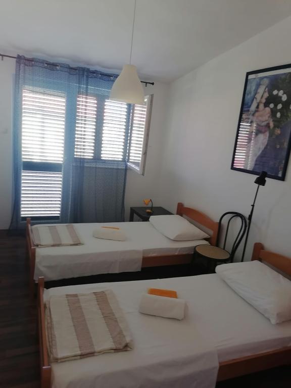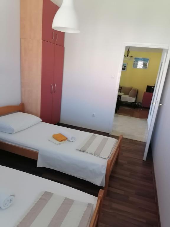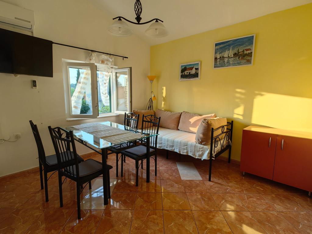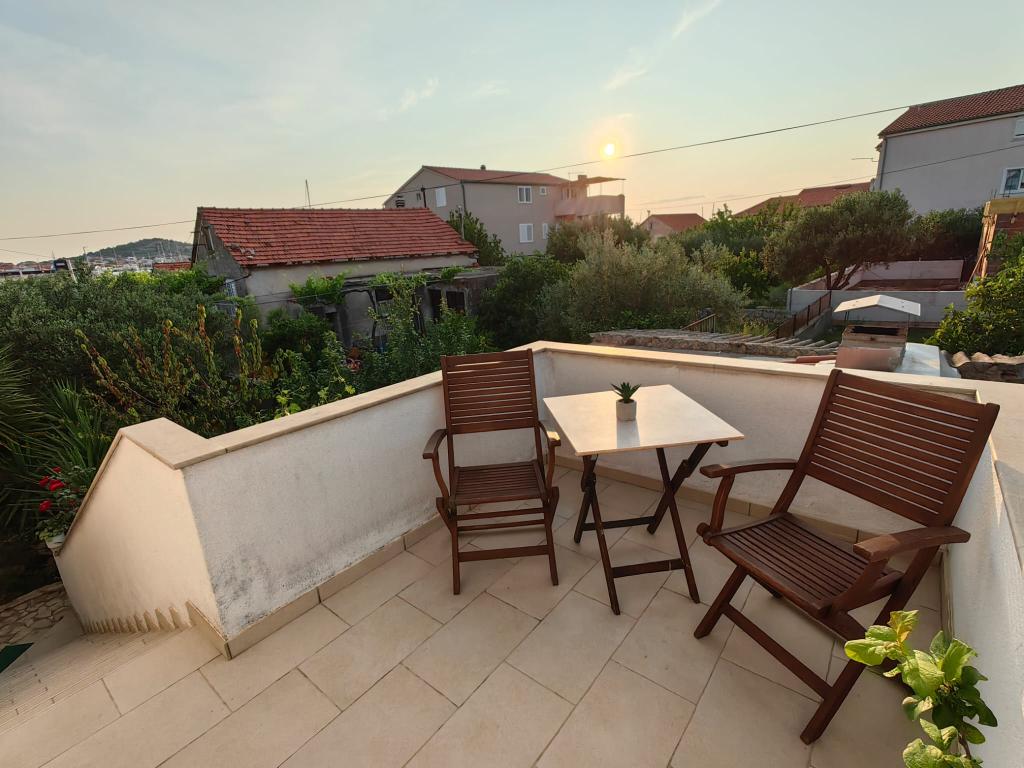 Appartement Lucija ligt in een rustig deel van Murter. Op slechts een steenworp afstand van het eerste strand en het stadscentrum wacht u een rustige vakantie. Er is slechts één appartement in het huis gelegen op de eerste verdieping. Het bestaat uit een volledig uitgeruste keuken met een woonkamer, twee slaapkamers en een badkamer. Het appartement heeft een groot terras met uitzicht op de jachthaven en de baai van Hramina, evenals een kleiner balkon.