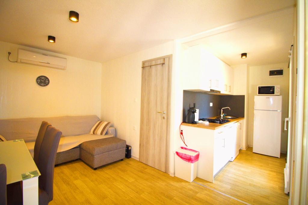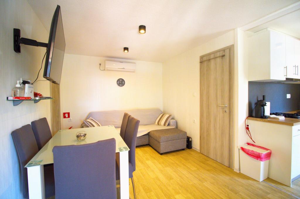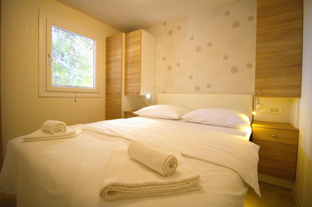 Stacaravan met twee slaapkamers is gelegen nabij het zandstrand van Slanica, het is slechts 50 meter van de zee. De stacaravan is voorzien van een keuken, koelkast, vaatwasser, WiFi internet. In de slaapkamers kunnen 4 volwassenen slapen, in de woonkamer staat een bank die als extra bed kan worden gebruikt om te slapen. Voor het appartement is er een mooi terras met uitzicht op zee in natuurlijke schaduw. Er is parkeergelegenheid voor één auto voor het huis en deze is gratis.