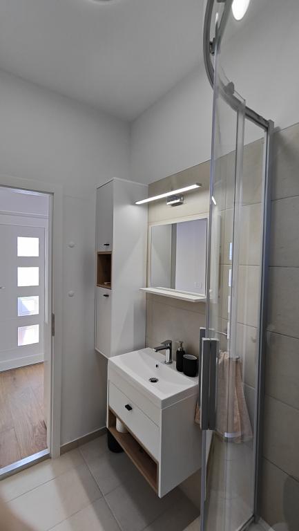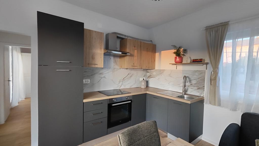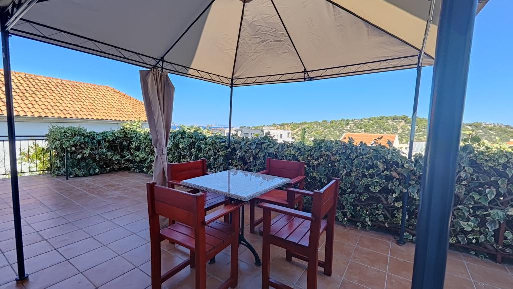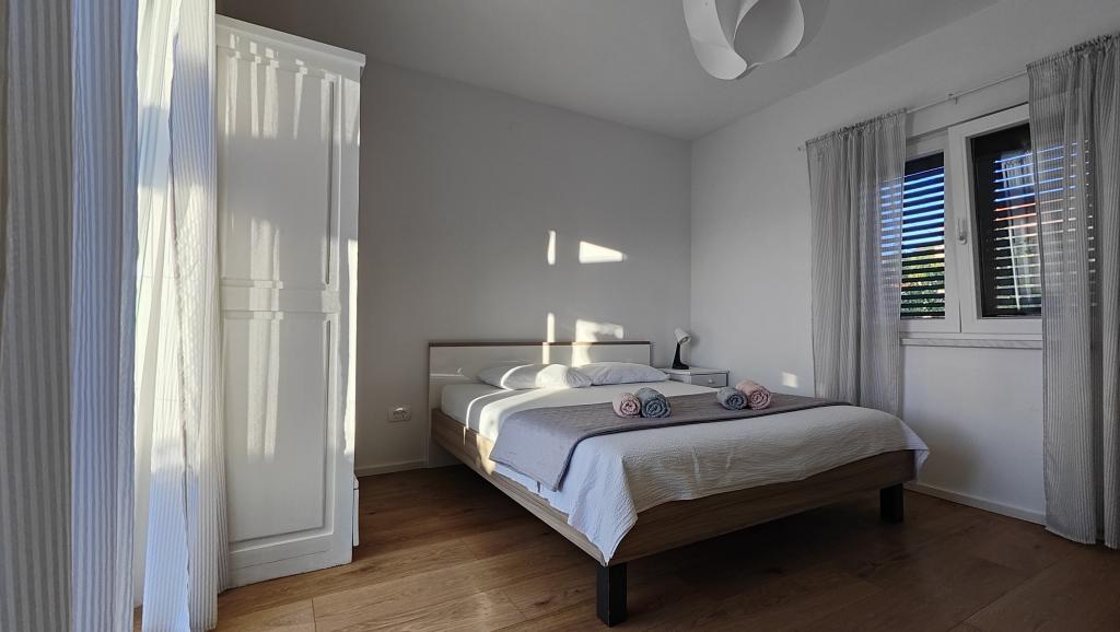 Volledig gerenoveerd appartement in een rustige omgeving, met een groot terras en uitzicht op zee, op 300 meter van het zandstrand van Slanica. Gasten hebben toegang tot een barbecue en een gezellige zithoek in de tuin, evenals een beveiligde parkeerplaats. Het appartement beschikt over een ruime aparte slaapkamer. De keuken is volledig uitgerust met een koffiezetmachine, vaatwasser, grote koelkast met vriezer en een wasmachine.
