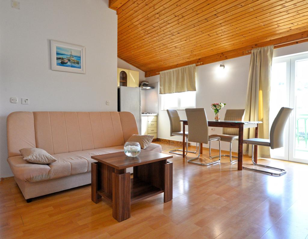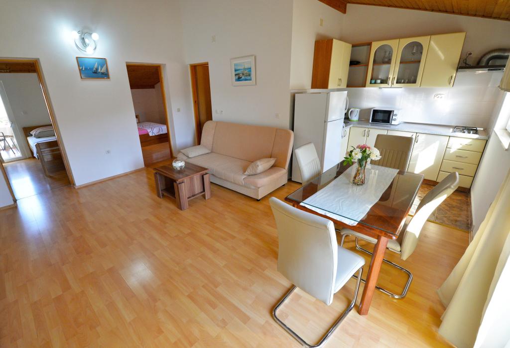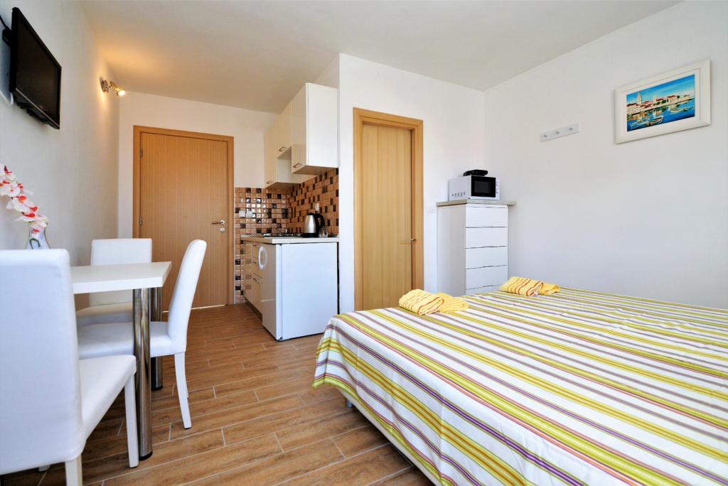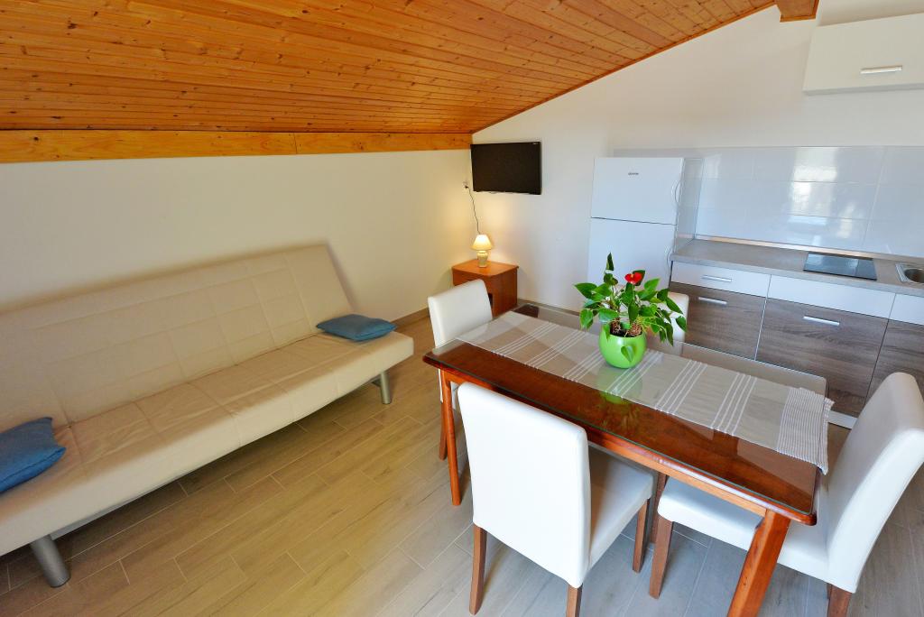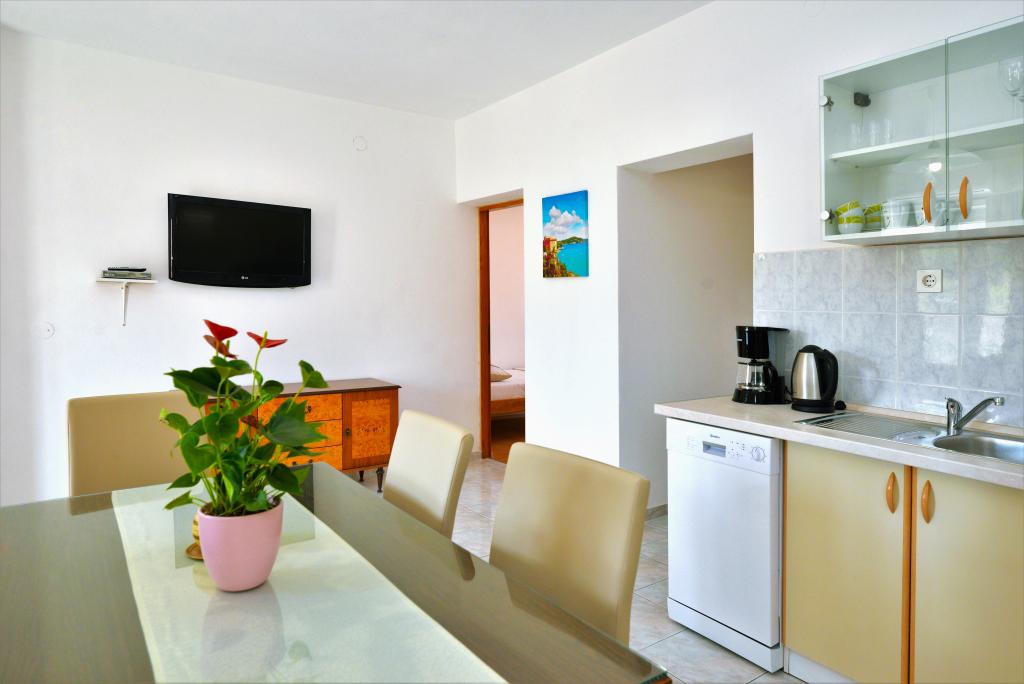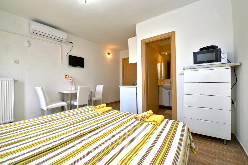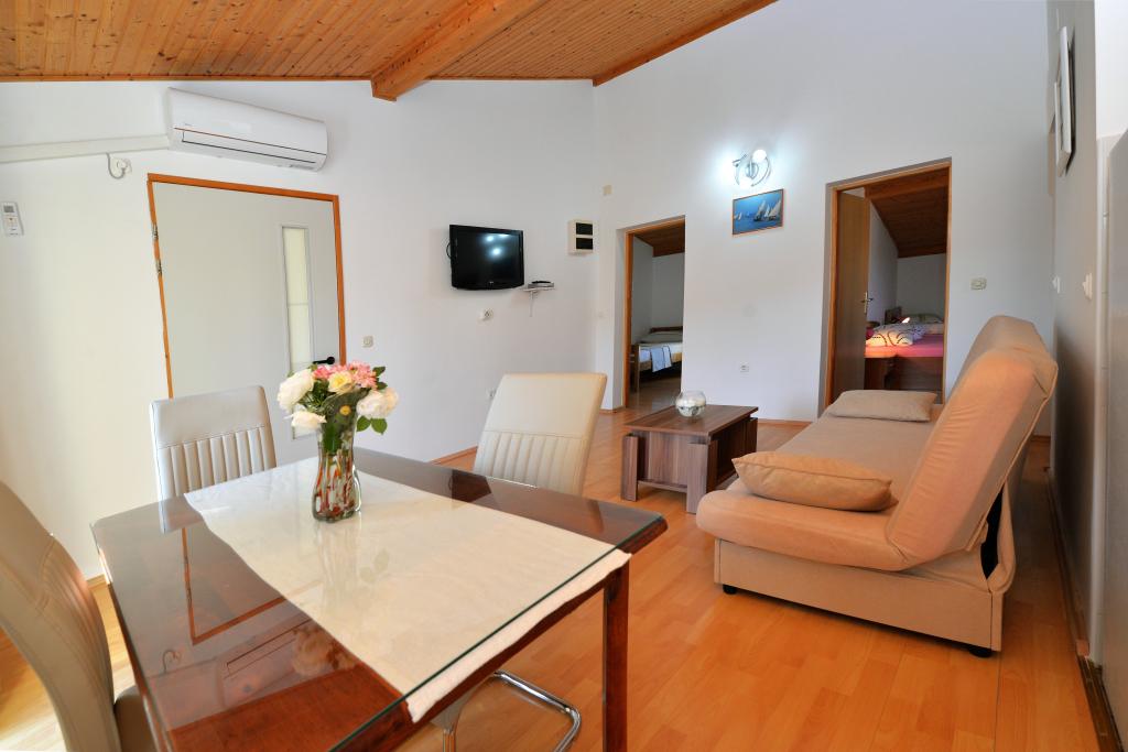 We zijn net klaar met ons verblijf in het appartement van Goranka's. Het appartement is klein maar bedoeld voor twee personen, dus het is voldoende. Het heeft een groot terras. Het appartement is schoon en goed onderhouden. De eigenaren waren erg beleefd. De locatie is ook geweldig. Een grote keuze aan stranden, iedereen zal iets voor zichzelf vinden. Wij adviseren