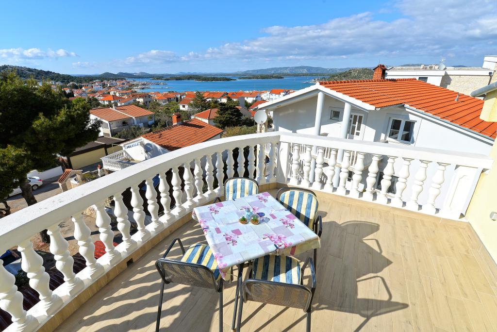 Voor uw perfecte vakantie bieden wij u zes prachtig ingerichte en volledig uitgeruste appartementen (airconditioning, wi-fi, satelliet-tv gratis) met een / twee / drie slaapkamers, keuken, badkamer, woonkamer en natuurlijk het onvermijdelijke grote terras. biedt een prachtig uitzicht op de zee en de Murter-archipel. De faciliteit is gelegen in een rustig deel van de stad, een doodlopende straat zodat het verkeer tot een minimum wordt beperkt, en is daarom ideaal voor rustzoekers en voor gezinnen met kinderen. Voor barbecueliefhebbers is er een grote buitengrill. Voor het huis bevindt zich een overdekte en beveiligde parkeerplaats voor tien auto's. Binnen tien minuten lopen is er een prachtig zandstrand Slanica, afstand van het centrum is ongeveer 600 m waar winkels, restaurants, cafés zijn en waar een intens zomerleven vol evenementen is. Onze appartementen zijn gewild vanwege het prachtige uitzicht, de sfeervolle ligging en het comfort, maar ook vanwege ons open hart en onze gastvrijheid. Welkom!