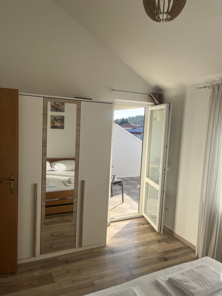 Centrum van Murter - een klein stadje voor een geweldige vakantie. Welkom bij de Blue Pearl appartementen, op een uitzonderlijke locatie in het centrum van Murter! De nieuwe Blue Pearl appartementen zijn rustig gelegen in het centrum van Murter en op 10 minuten van de mooiste stranden van het eiland. De locatie en het prachtige uitzicht vanuit het appartement zijn de perfecte keuze voor iedereen die op zoek is naar een ontspannen en rustige vakantie aan de nabijgelegen stranden van het eiland Murter. De appartementen bieden een aangename sfeer en een terras om te ontspannen en van het uitzicht te genieten. De prijzen zijn inclusief huur voor 2 personen en de prijs is inclusief toeristenbelasting, parkeerplaats en gratis wifi. Het appartement beschikt over een slaapkamer met een tweepersoonsbed en een terras met een zithoek, een badkamer, een woonkamer met een keuken en een eetkamer. Het appartement is voorzien van beddengoed, handdoeken, servies, een magnetron en een koffiezetapparaat. Gasten kunnen gebruikmaken van de overdekte barbecue in een pittoresk stenen huis. Het appartement beschikt over een opvouwbaar kinderbedje voor de kleintjes.