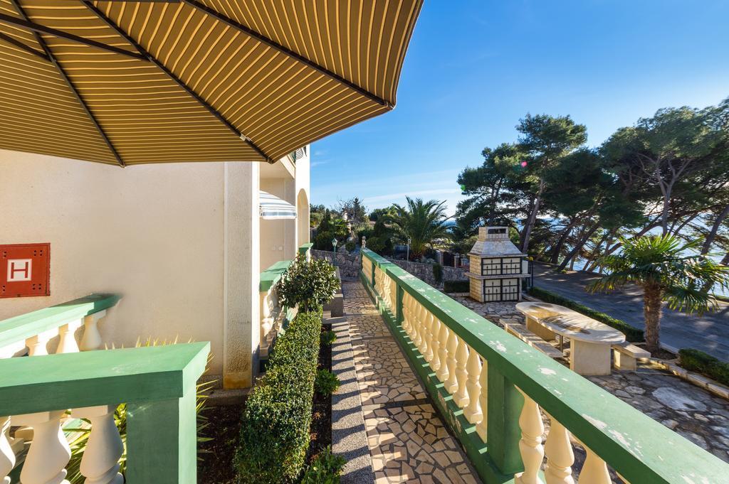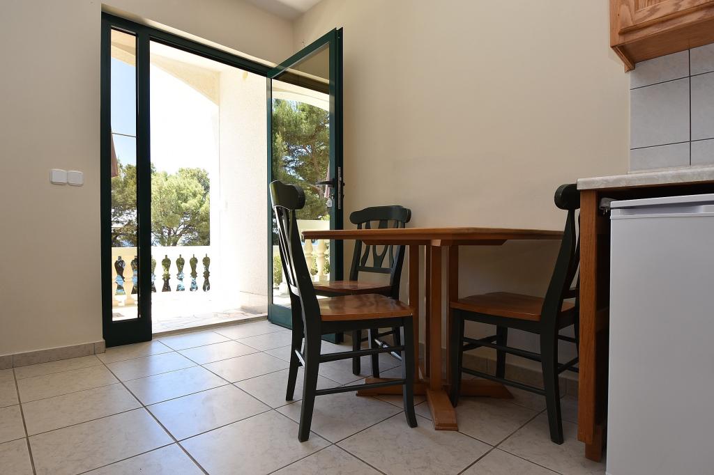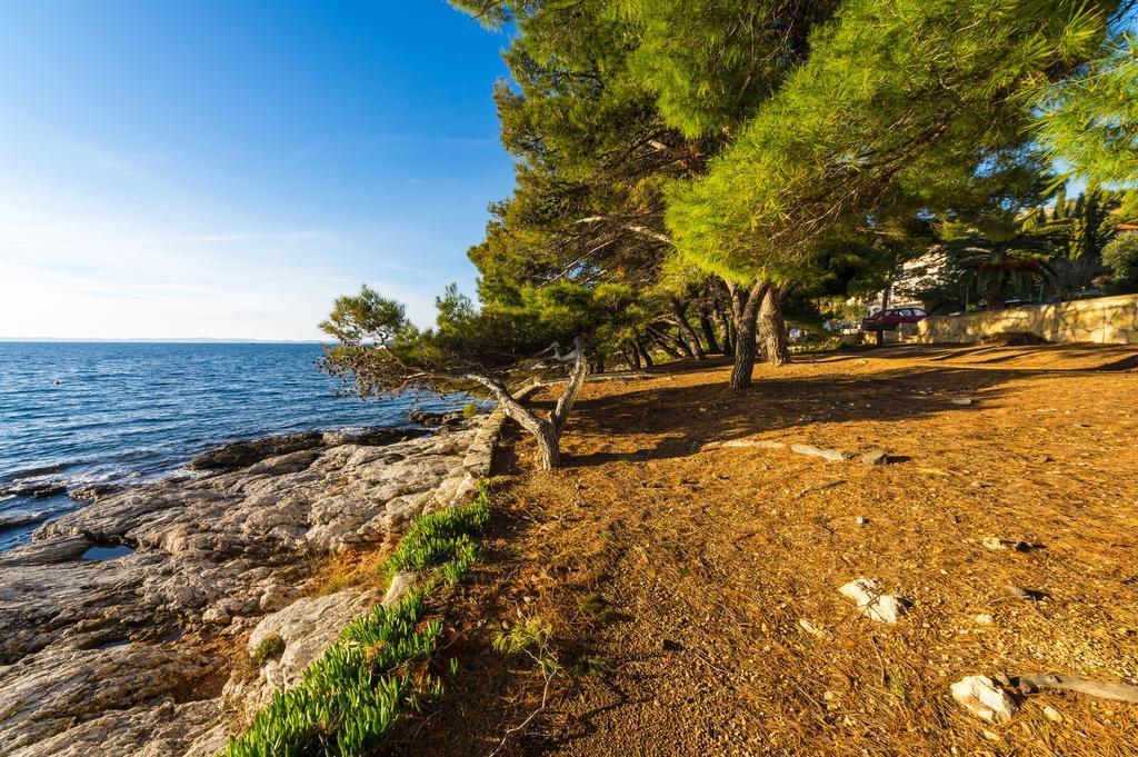 Golden Shell Apartments ligt direct aan zee, aan de Pod Raduč-straat. Deze locatie is de mooiste en populairste op het hele eiland Murter. Het rotsachtige strand ligt voor het huis en in de buurt liggen de zandstranden van Slanica en Čigrađa. Het gebied is rustig en er is weinig verkeer. Voor het huis kunnen gasten zwemmen, zonnebaden en ontspannen in de schaduw van de pijnbomen. Het centrum van Murter ligt op ongeveer 2 km afstand, maar is gemakkelijk te bereiken via een aangename wandeling door de groene omgeving rond het Slanica-strand. Er is een grote parkeerplaats voor het huis.