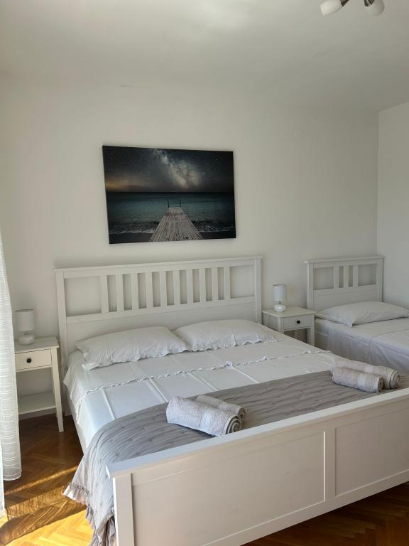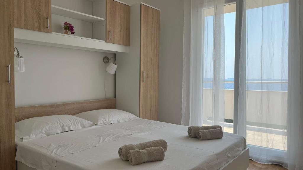 Volledig ingerichte appartementen in een privéhuis, op de eerste rij aan zee met uitzicht op het Kornati Nationaal Park. Wij bevinden ons in een rustige omgeving vlak bij het beroemde zandstrand Slanica, op 10 minuten lopen van het centrum.