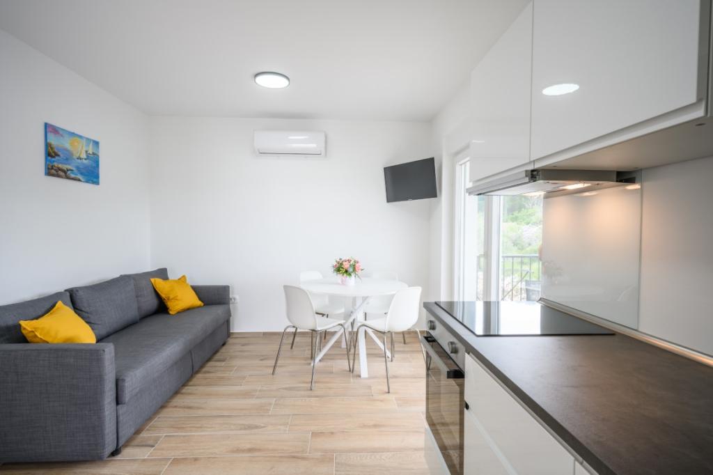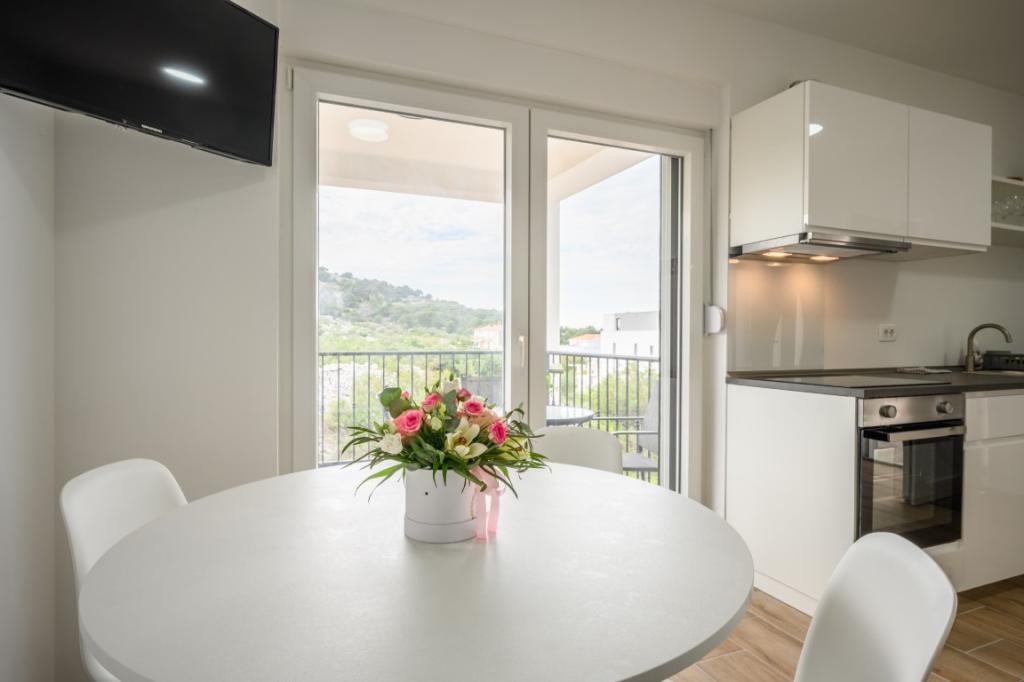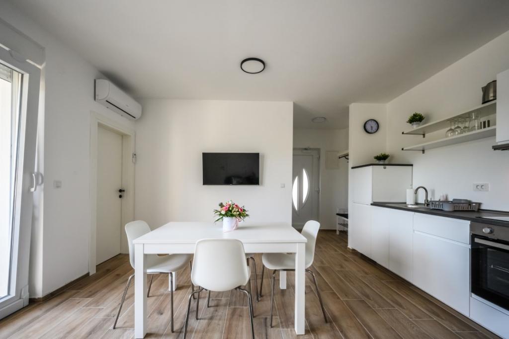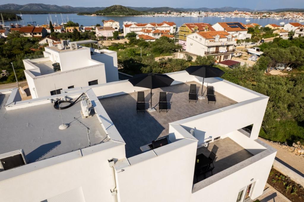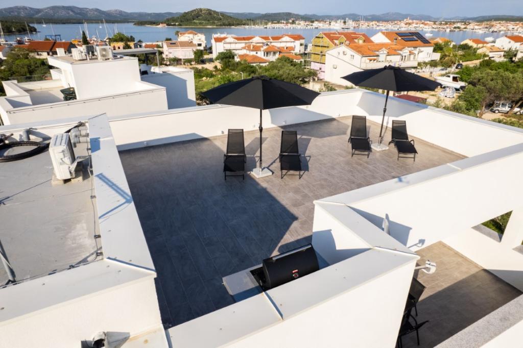 Appartementen Mate zijn modern uitgerust met modern meubilair en bevinden zich in een rustige buurt van Murter, in de buurt van het strand van Podvrške (5 minuten lopen) en het strand van Luke (5 minuten lopen). Elk appartement heeft een eigen terras en op het dak van het huis is er een gemeenschappelijk terras met ligstoelen en een gasbarbecue.