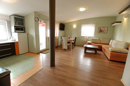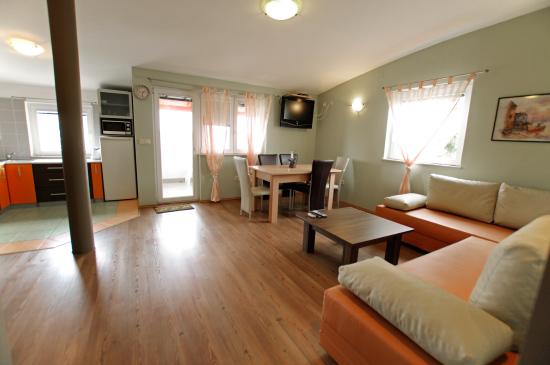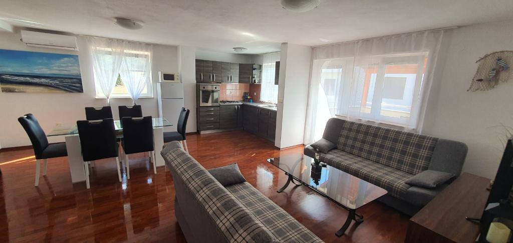 Het appartement is goed uitgerust, schoon, ruim voor 4 personen en comfortabel. Donačini zijn erg vriendelijk en geven concrete en nuttige informatie. Prachtig terras met uitzicht waar u de hele dag van kunt genieten. Goede locatie, dichtbij de stad.