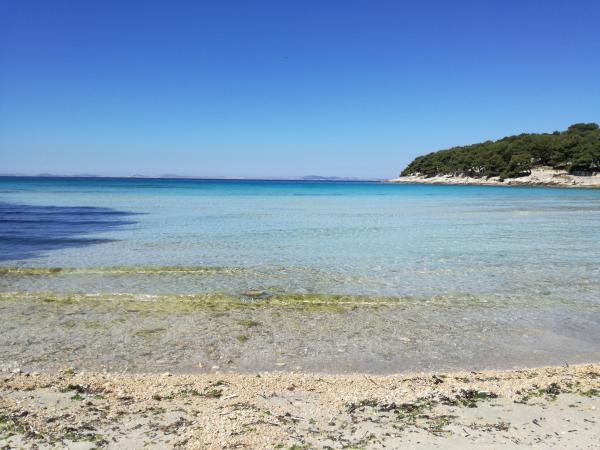 De mooiste vakantie voor een gezin is er een waarbij je rustig ontwaakt met het geluid van de zee en in slaap valt met uitzicht op de zonsondergang boven de open zee en de Kornati-eilanden (een nationaal park met 150 eilandjes)! Het familiehuis Juraga maakt dit mogelijk. De directe nabijheid van de turquoise zee (20 m), het zandstrand Slanica (100 m), de kiezelstranden van Čigrađe en Podvrška, en de romantische steenstranden waar je kunt genieten van de kracht van steen, zon en zee, zijn nog een reden waarom je terug wilt keren naar onze appartementen met ongedwongen comfort. Elk appartement heeft een slaapkamer, een keuken met woonkamer, een badkamer met douche en twee balkons. Ze zijn uitgerust met tv en wifi. Het huis kan ook in zijn geheel worden gehuurd. In de ruime tuin met geurige pijnbomen kun je mediterrane vruchten uit de tuin plukken (vijgen, druiven) en je opfrissen. Je kunt ons gemakkelijk over de weg bereiken en er zijn parkeerplaatsen voor je auto en fiets. Wij kijken uit naar uw komst!