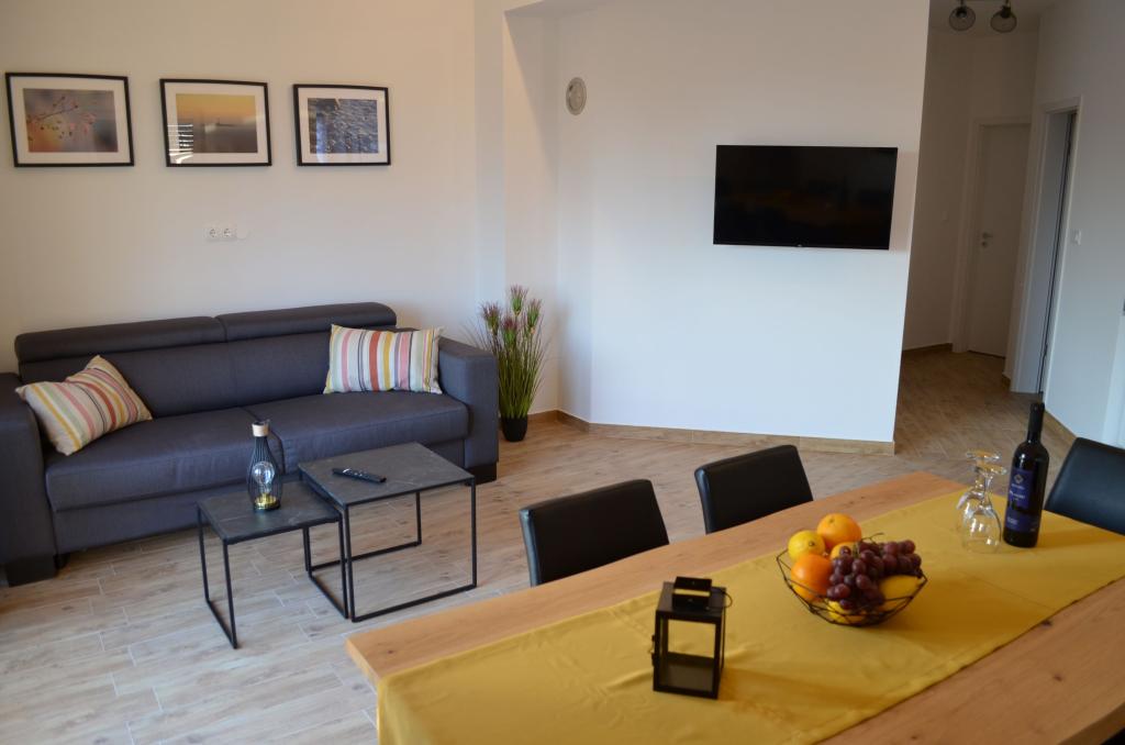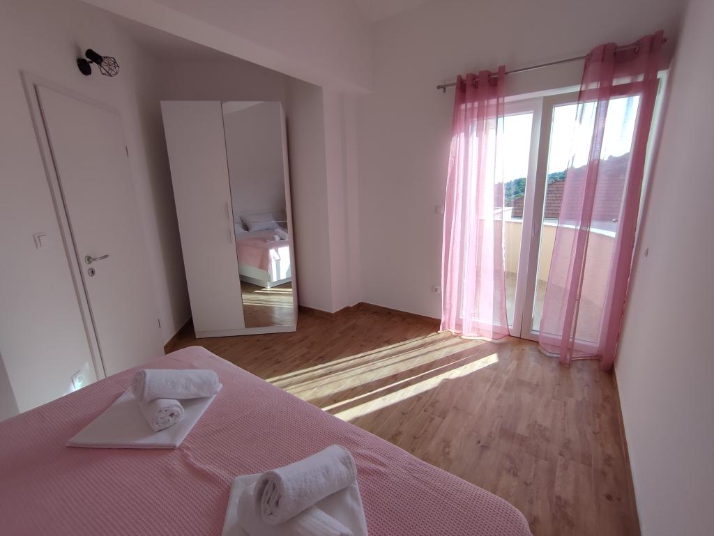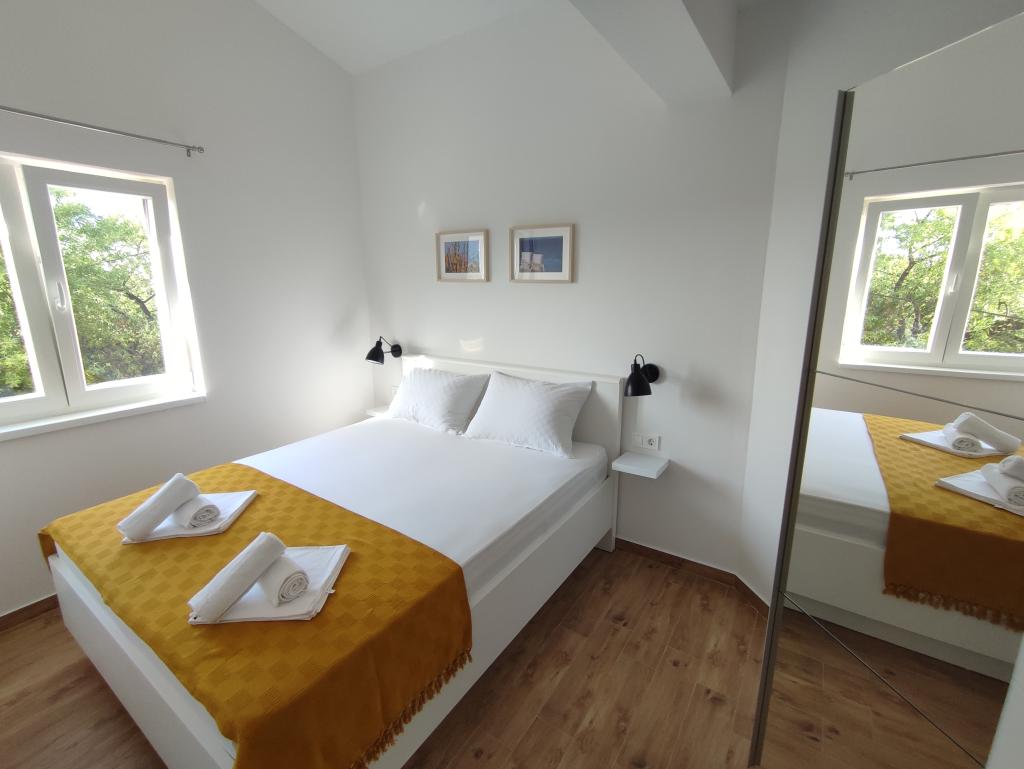 Op de tweede verdieping van een gezinswoning, in een rustige en aangename buurt van Murter, bevinden zich onze appartementen met airconditioning, ideaal voor een ontspannen verblijf voor stellen en gezinnen. Het strand van Čigrađa ligt op 600 meter afstand en het centrum van de stad op 1,3 km. De accommodatie biedt drie appartementen: een appartement van 80 m² voor 4 personen met twee slaapkamers, een volledig uitgeruste keuken en een balkon met zeezicht, en twee appartementen van 42 m² voor 2 personen, elk met een balkon - een met zeezicht, de andere met uitzicht op de tuin. Alle gasten hebben gratis parkeergelegenheid, airconditioning in elk appartement en een wasmachine in de gemeenschappelijke ruimte. Roken is niet toegestaan in de accommodatie, behalve op de balkons. Huisdieren zijn niet toegestaan. Gasten waarderen de rustige locatie, de netheid en het comfort van de accommodatie - een perfecte uitvalsbasis om Murter en de omliggende stranden te verkennen.