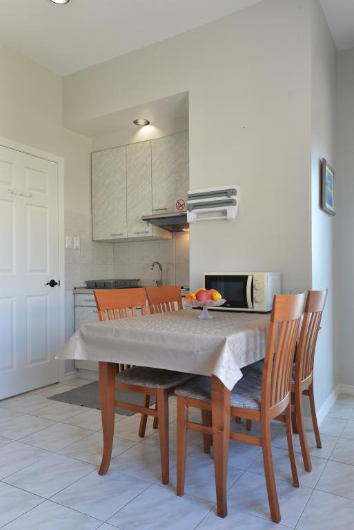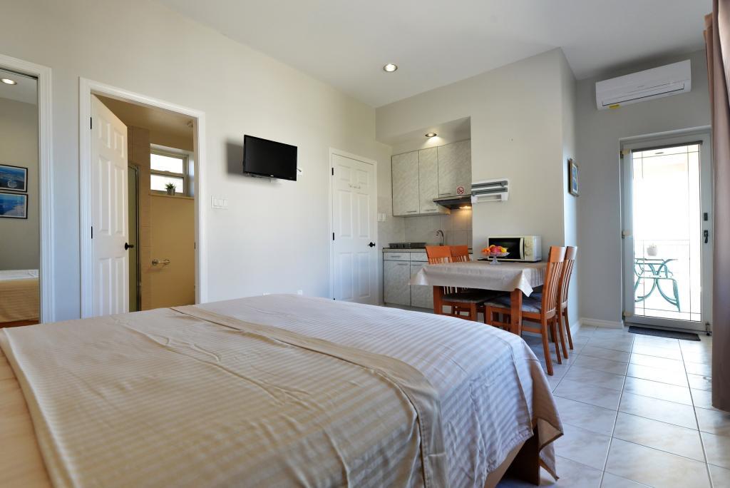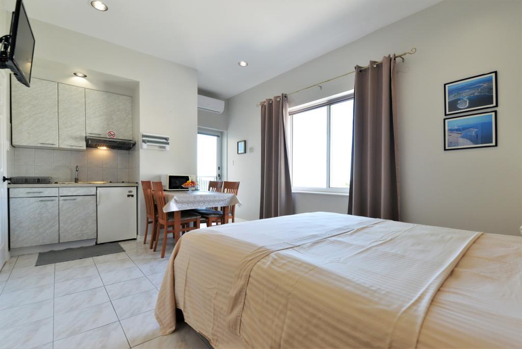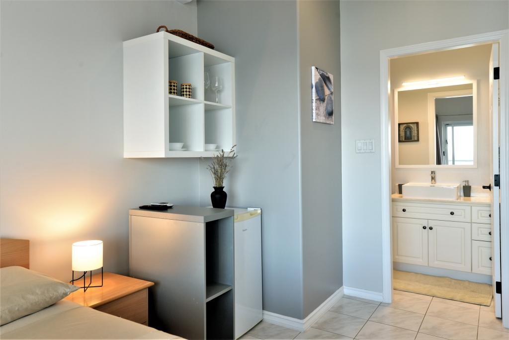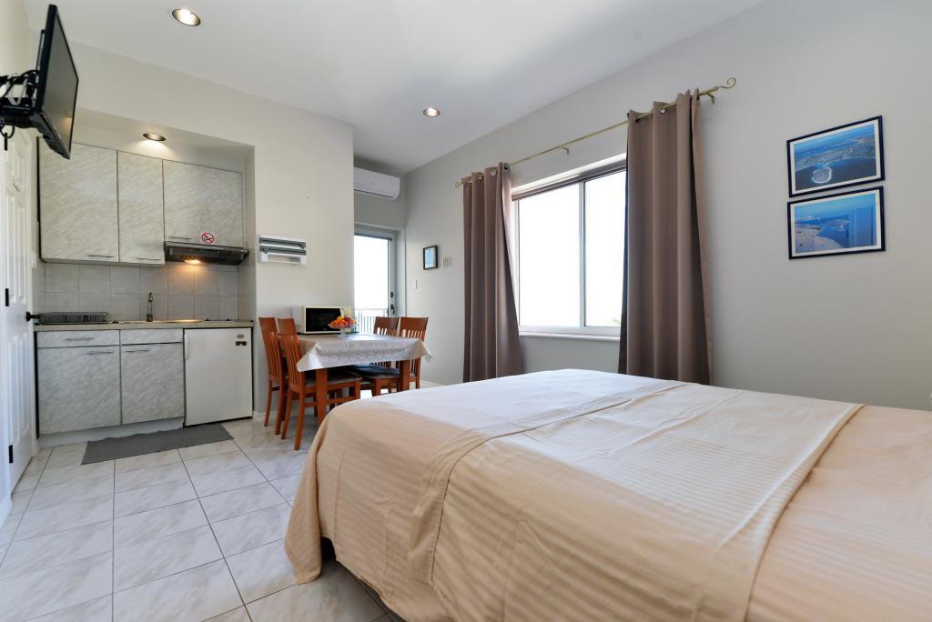 Het gebouw is prachtig, net als op de foto, de locatie is uitstekend, aangezien het strand aan de overkant van de weg ligt en er ook een baai in de buurt is met bars waar eten en drinken wordt geserveerd. Om naar de winkel of de stad te gaan is een fiets of auto noodzakelijk. De studio is geschikt voor twee personen, schoon en goed onderhouden. In de keuken ontbrak een fornuis en een snijplank, en in de badkamer ontbraken een dweil en een bezem. Er was ook geen droogrek voor badkleding en handdoeken, deze kunnen aan de balkonleuning worden gehangen. Het balkon wordt gedeeld met de aangrenzende kamer. De gastheer is vriendelijk en onopvallend. Ik raad aan om een studio te huren!